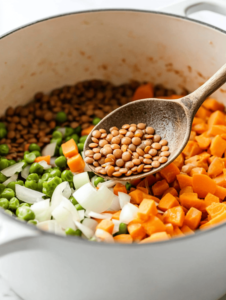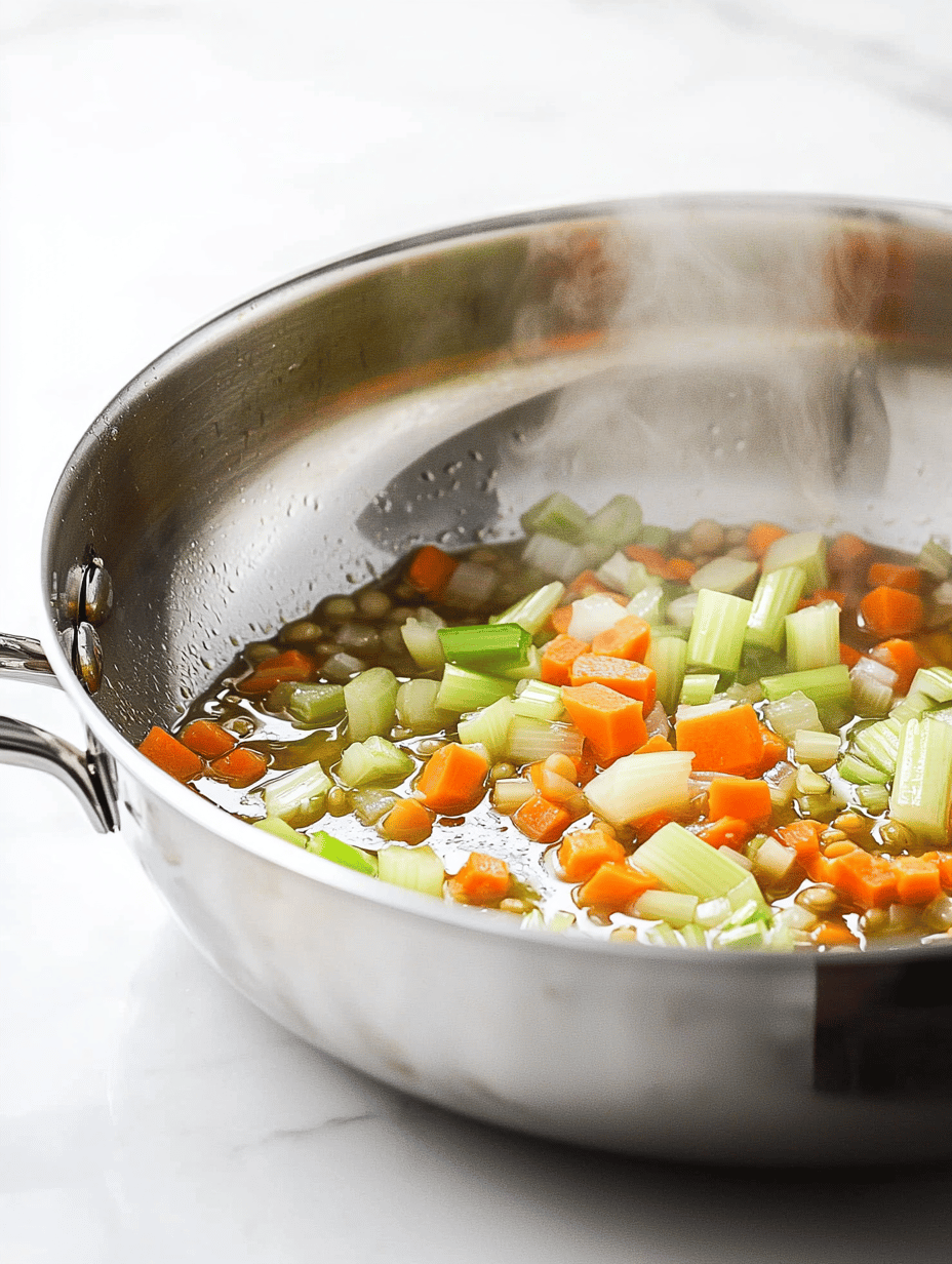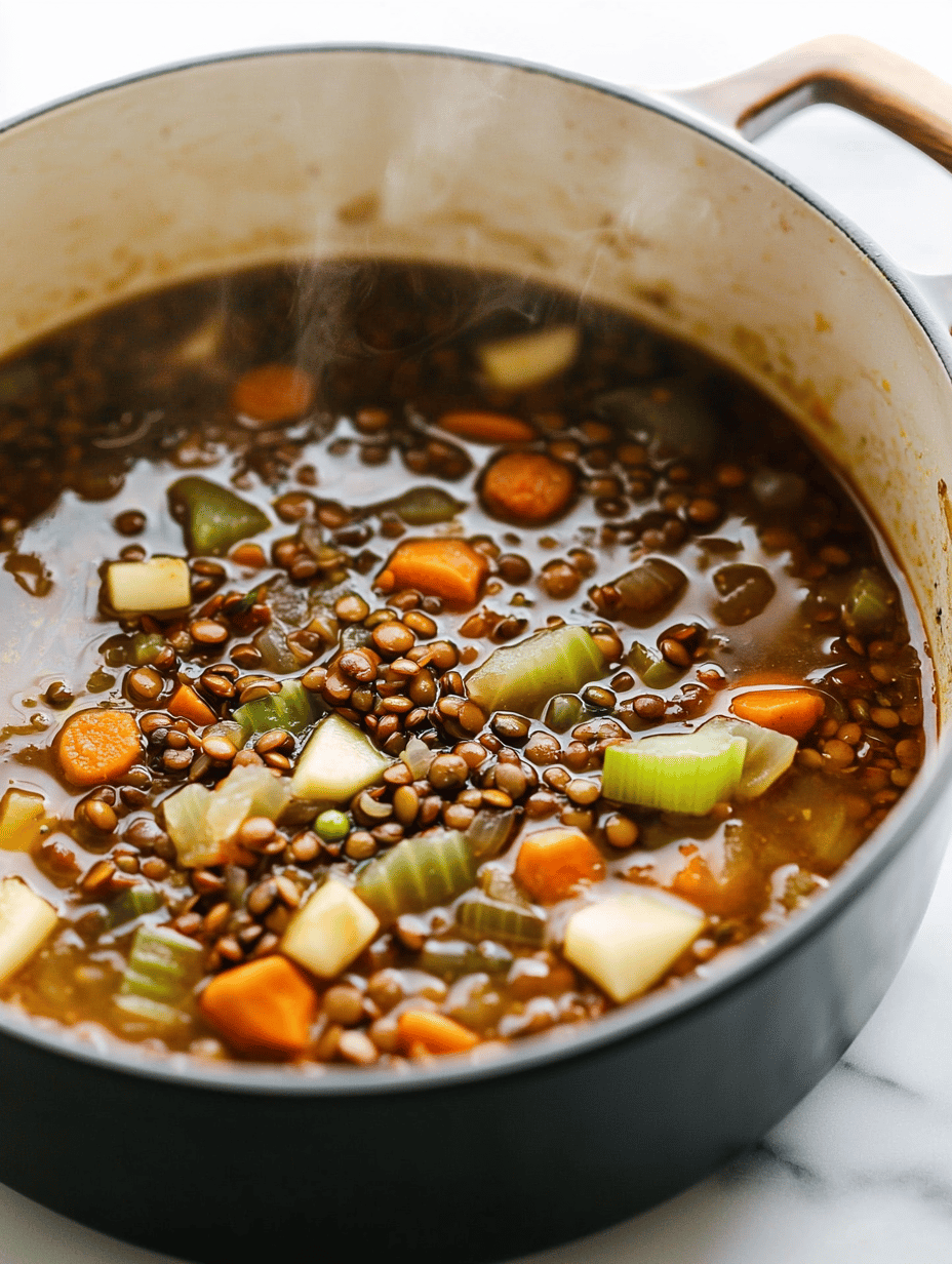 Reduce the heat to low and cover the pot, letting the soup simmer gently for 30-35 minutes, or until the lentils are tender and have absorbed much of the flavorful liquid.