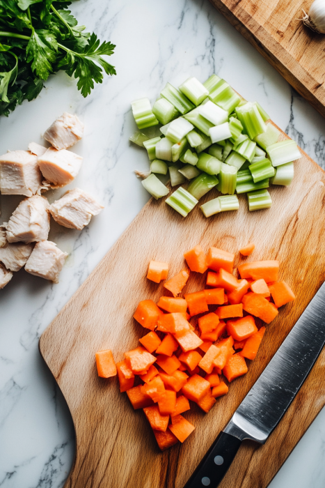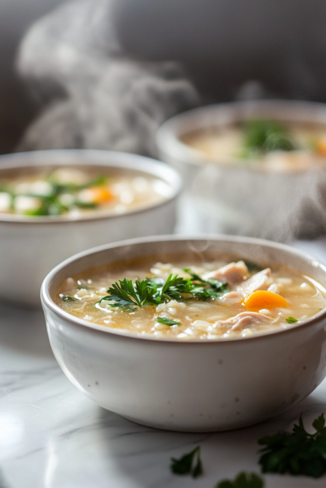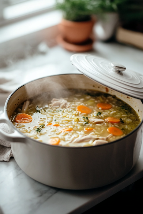 Get Everything ChoppedChop the onion, carrots, celery, and chicken into bite-sized pieces so the soup cooks evenly. Warm the OilHeat olive oil in a large pot over medium heat, just until it starts to shimmer. Build Flavor With VegetablesAdd the onion, carrots, and celery, letting them soften slowly for several minutes until they smell sweet. Add Garlic and ChickenStir in the garlic and chicken, cooking until the chicken turns white around the edges. Add the Broth and RicePour in the chicken broth and stir in the rice, thyme, bay leaf, salt, and pepper. Bring to a SimmerLet the soup come to a gentle boil, then lower the heat and cover it so the rice cooks through. Taste and AdjustOnce the rice is tender, taste and adjust, sometimes more salt, sometimes a squeeze of lemon for brightness. Let It SettleRemove the bay leaf and let the soup rest for a few minutes so the textures even out. Serve WarmLadle the soup into bowls and finish with parsley. The warmth hits immediately.
