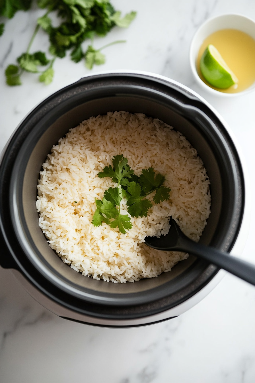 Cook rice in a rice cooker or pot, then stir in cilantro and lime juice.