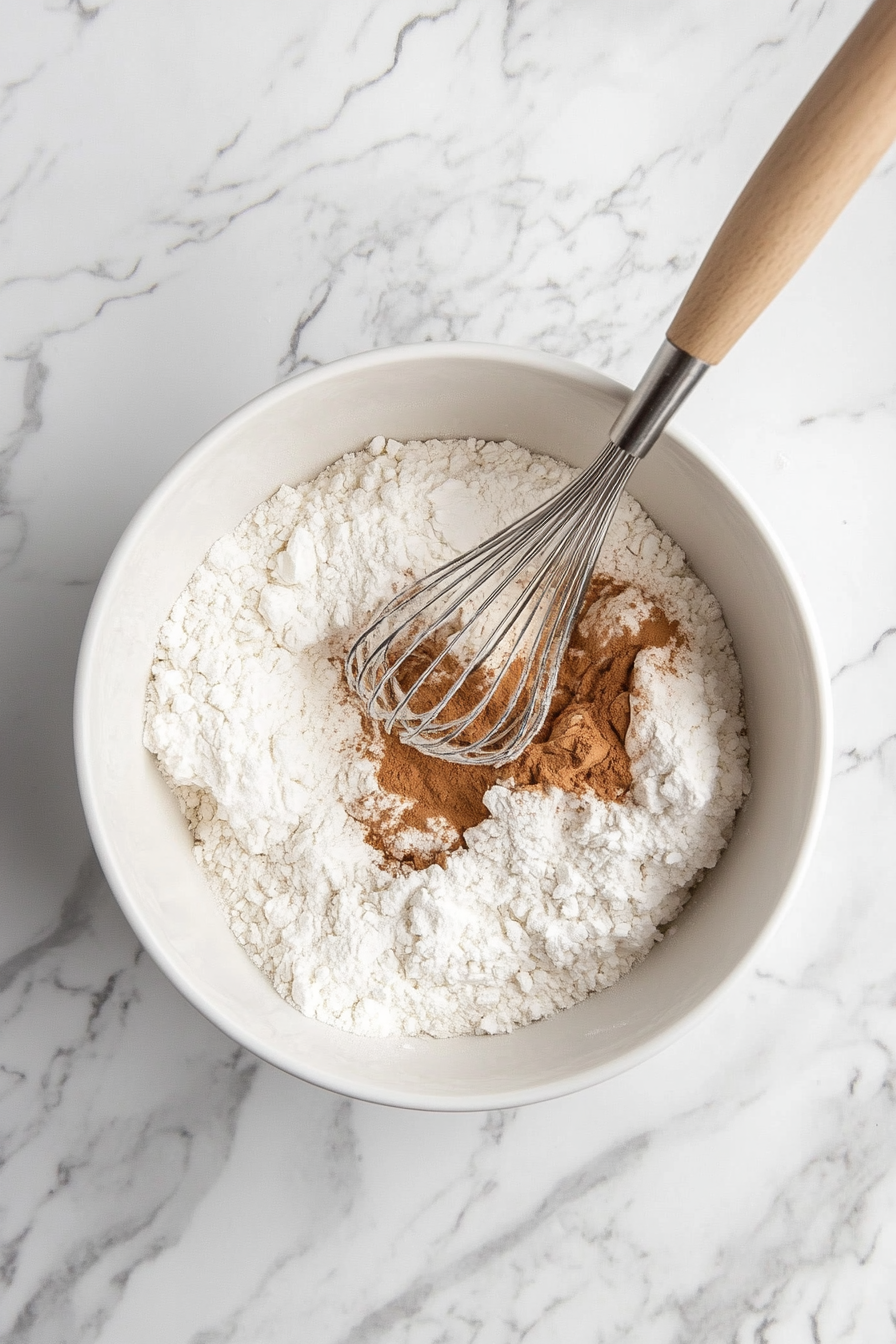 In a large bowl, whisk together the flour, baking soda, baking powder, cinnamon, apple pie spice, and salt. Set aside.