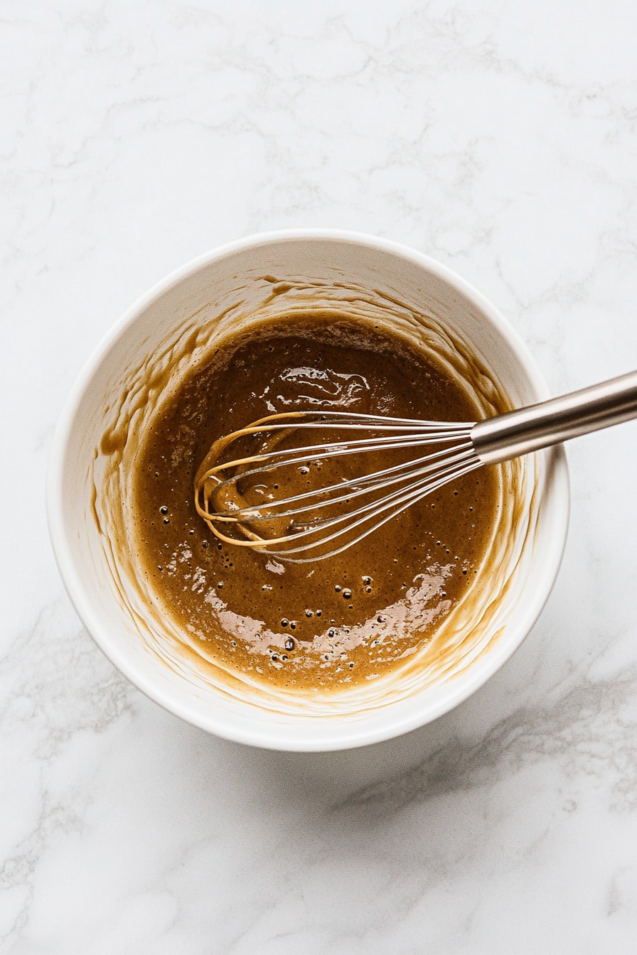 Whisk the melted butter, egg, brown sugar, granulated sugar, milk, and vanilla. Add to the dry ingredients along with the reduced apple cider, and mix until smooth.