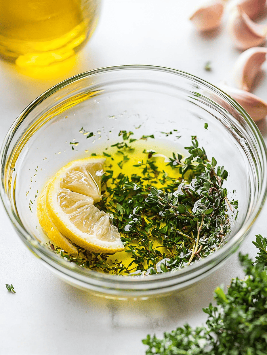 In a small bowl, combine the remaining olive oil, lemon zest, lemon juice, minced garlic, and chopped herbs. Mix well to create a simple marinade or dressing.