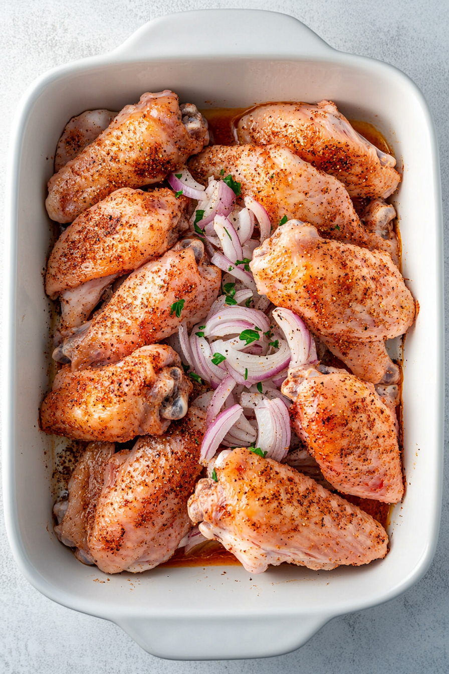 In a bowl, mix wings with seasoned salt, poultry seasoning, pepper, and minced garlic.