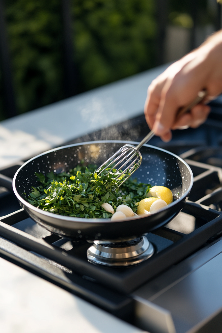 In a small bowl, stir together marinade ingredients: 1 Tbsp parsley, 2 garlic cloves, 1 tsp Dijon, 1/4 tsp salt, 1/8 tsp pepper, 1 1/2 Tbsp olive oil, and 1 1/2 Tbsp lemon juice.