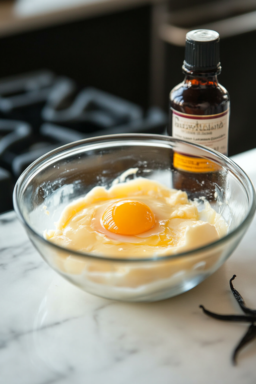 Add the eggs one at a time, beating well after each addition. Stir in the vanilla extract.