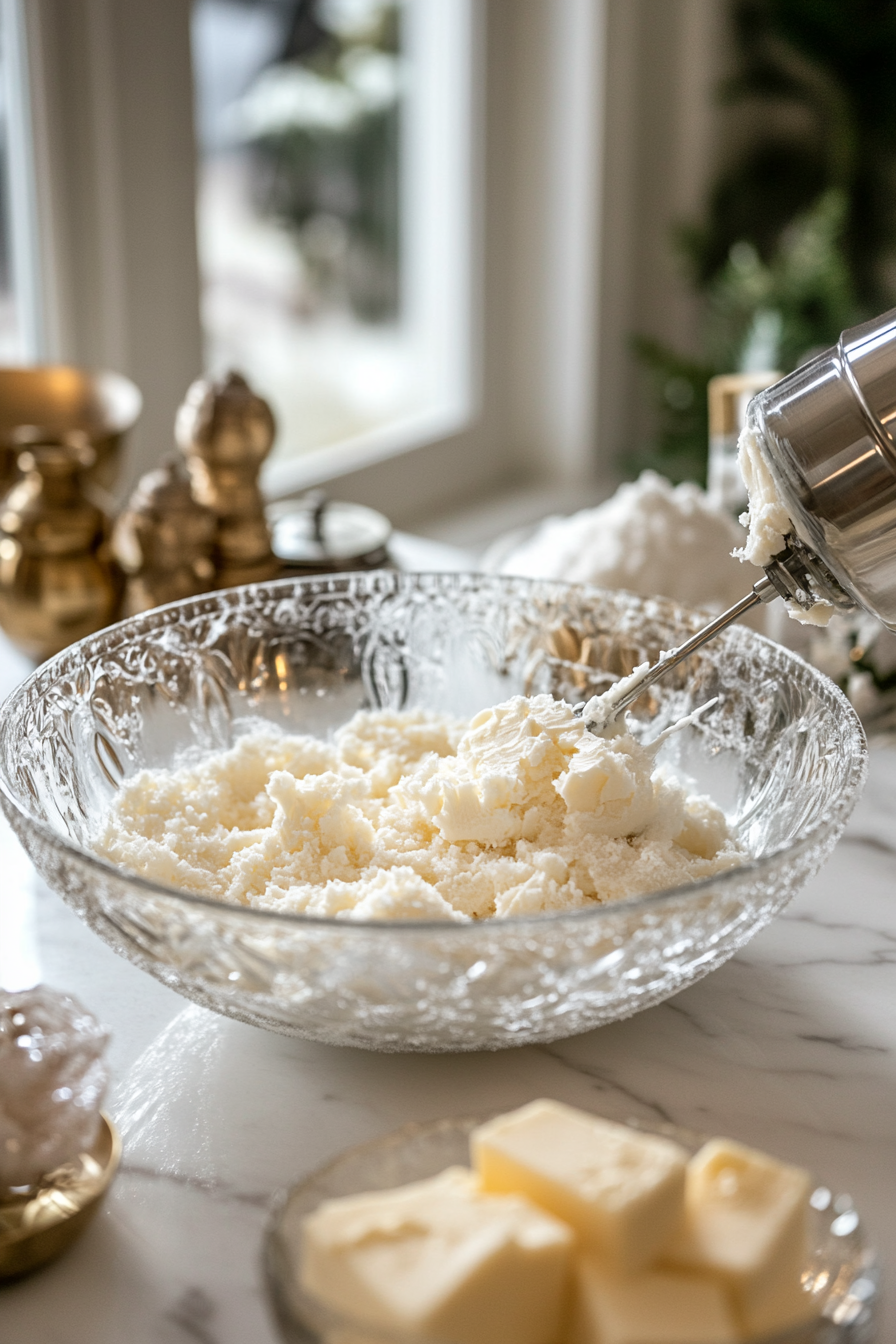 In a separate large bowl, cream together the softened butter and sugar until light and fluffy.