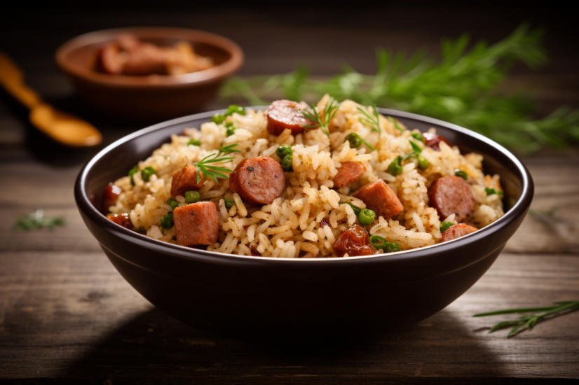 Add broth, garlic, salt, sage, thyme, pepper, cayenne, and the cooked sausage. Bring it to a boil. Once boiling, add rice and parsley.