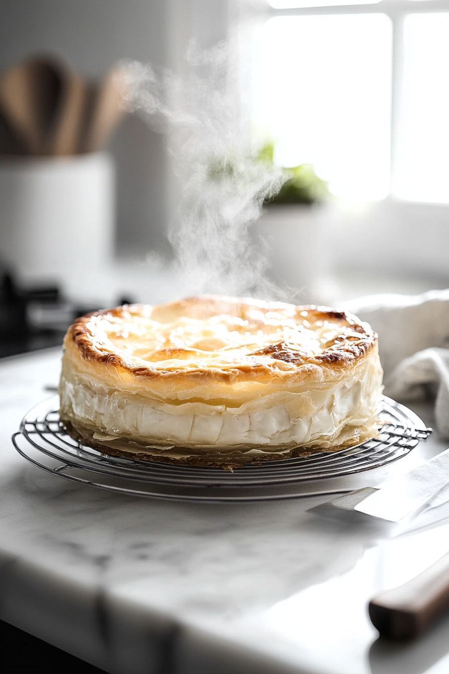 Score the Pastry: Make a small 5mm hole on top, then score curved lines from the center outward. Brush with beaten egg and chill for 15 minutes.