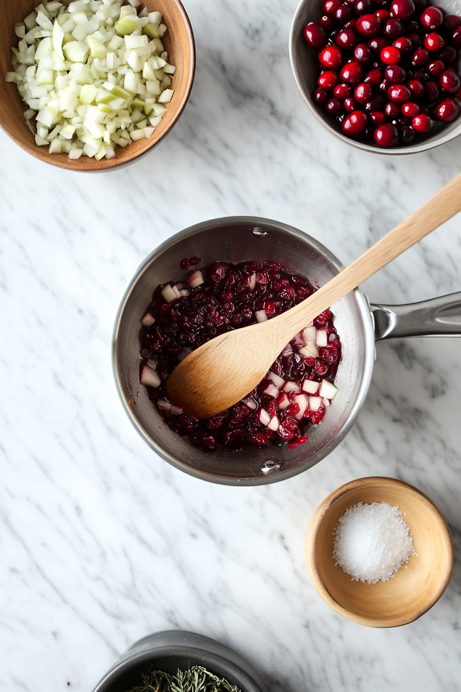 Make the Chutney: Simmer chutney ingredients with 50ml water for 30 minutes until thick, then cool completely.