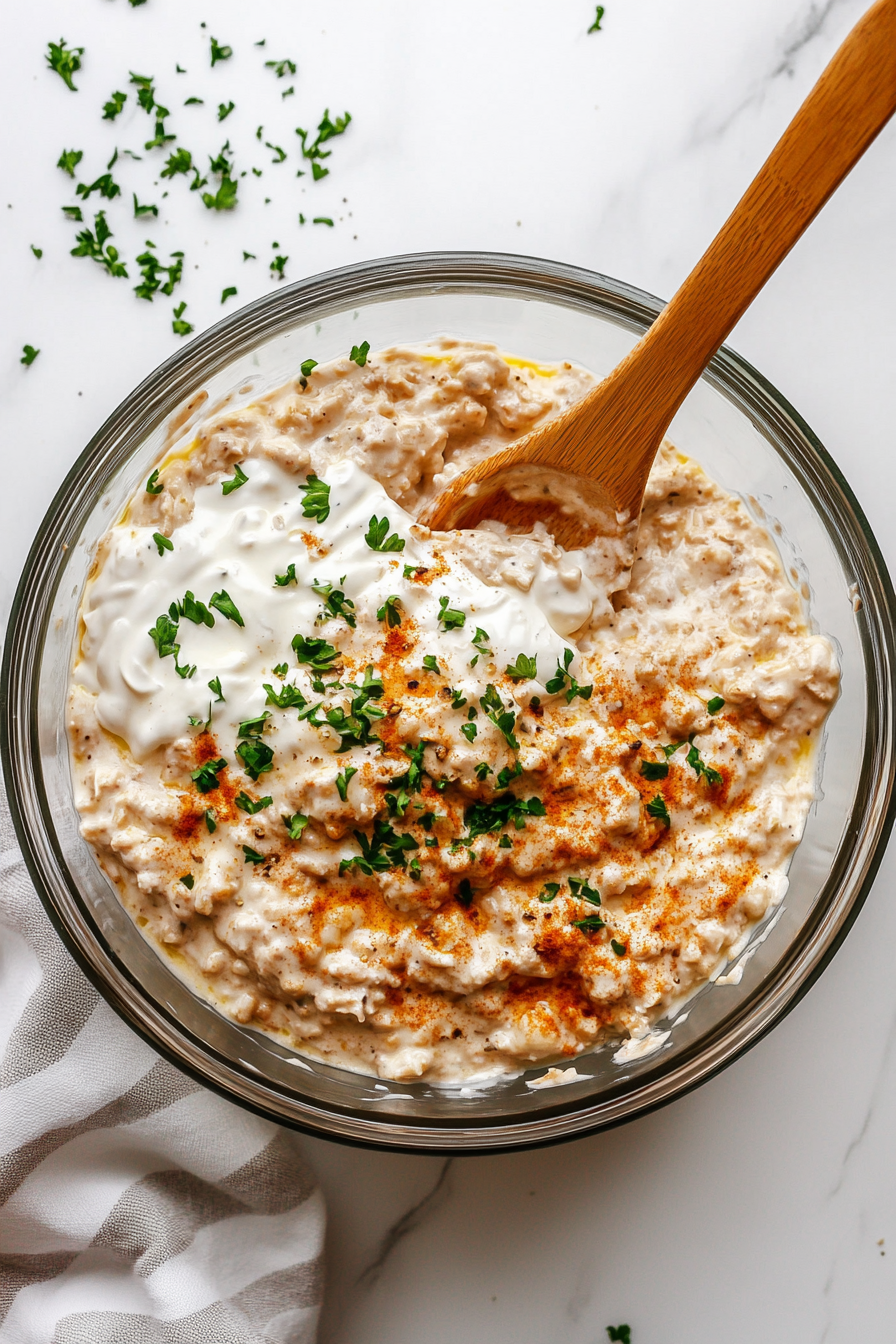 In a separate bowl, combine crushed Ritz crackers with melted butter.