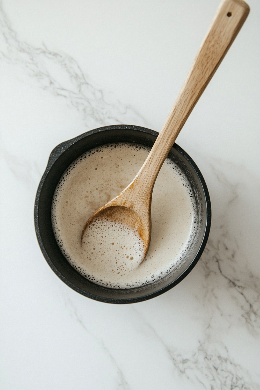 Bring to a simmer, stirring until the sauce thickens to a smooth, glossy texture.