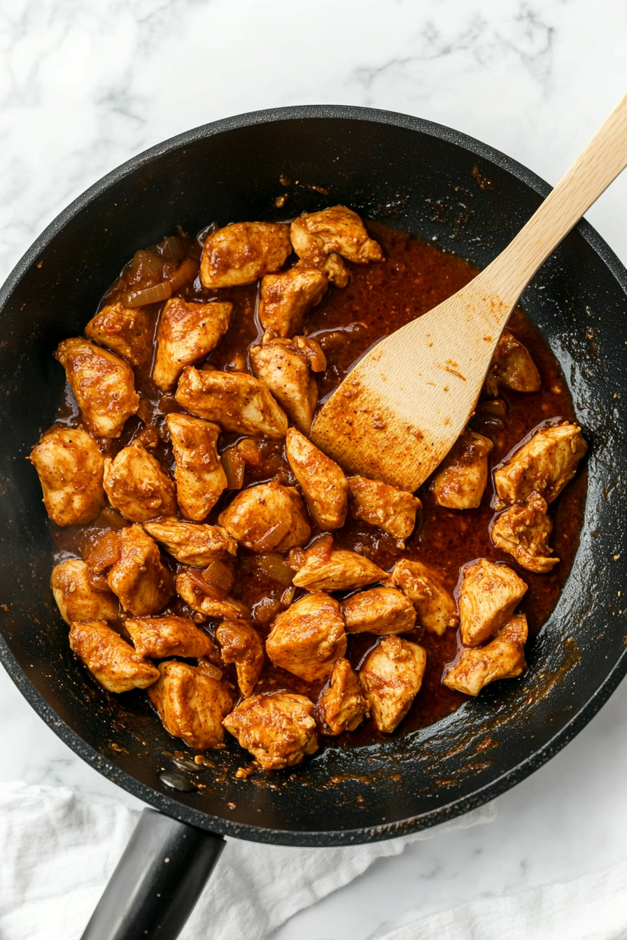 Cook uncovered for 2–3 minutes until the sauce thickens slightly.