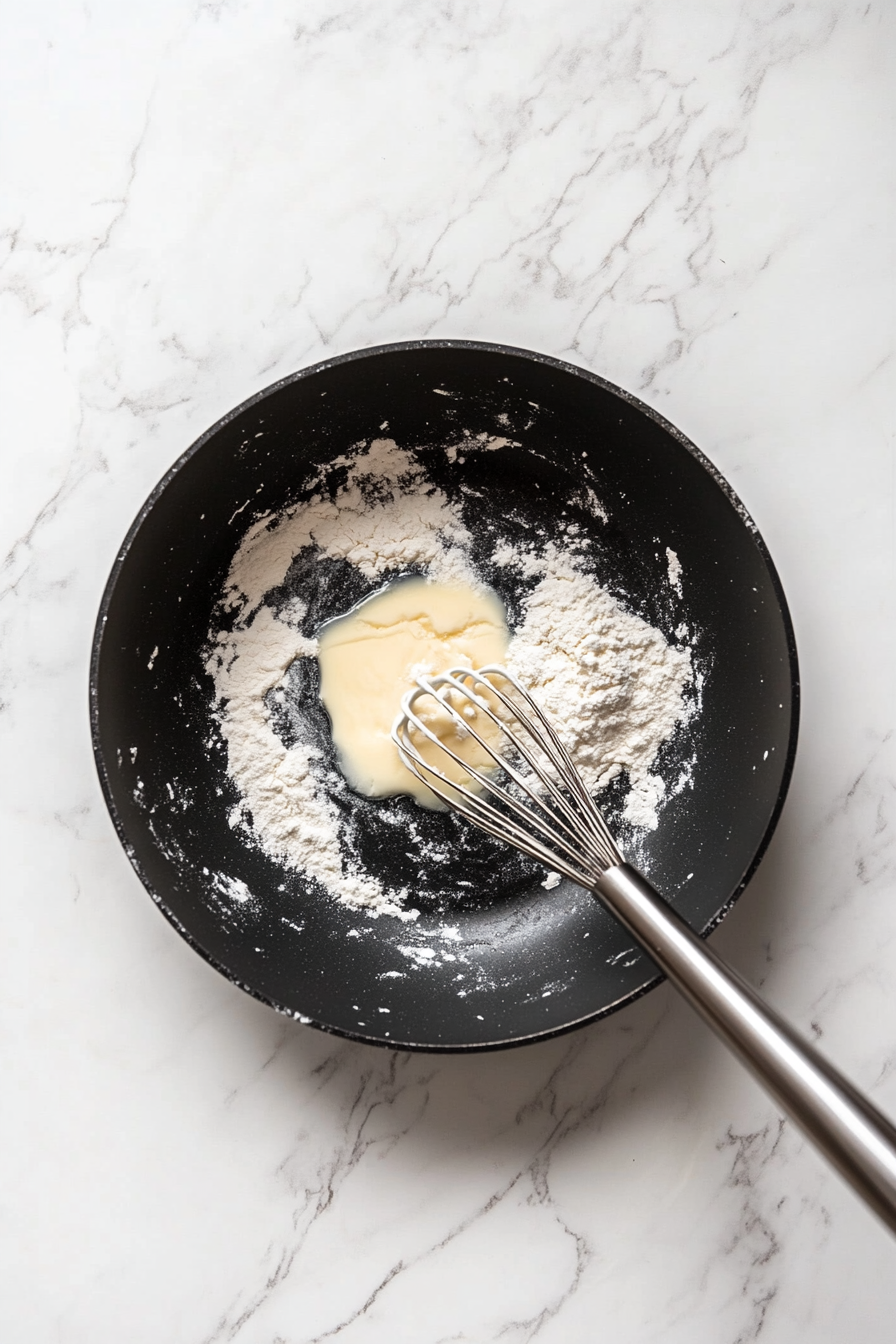 Slowly stir in chicken stock, white wine, and lemon juice. Simmer until thickened.