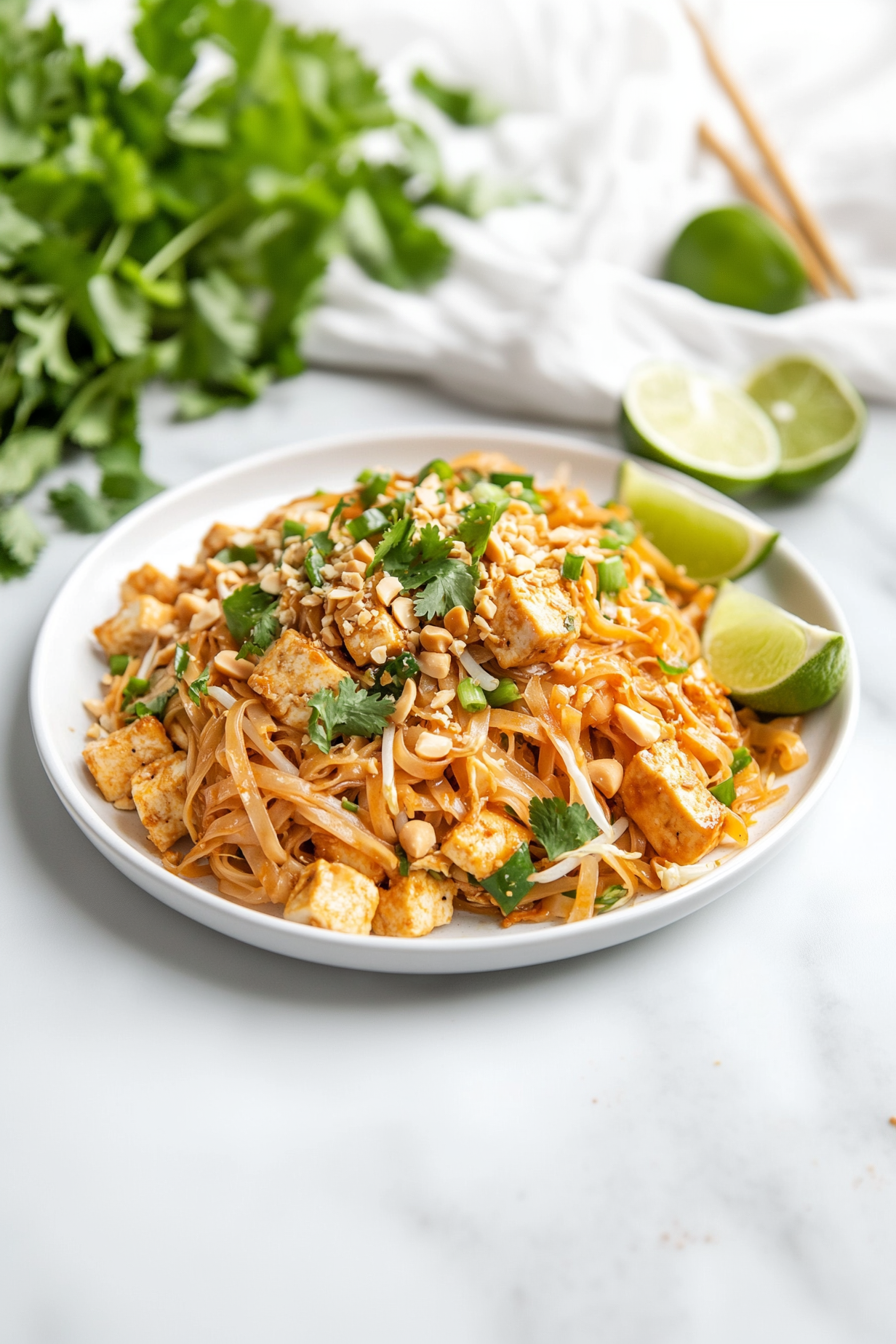Garnish with cilantro, chopped peanuts, and lime wedges.