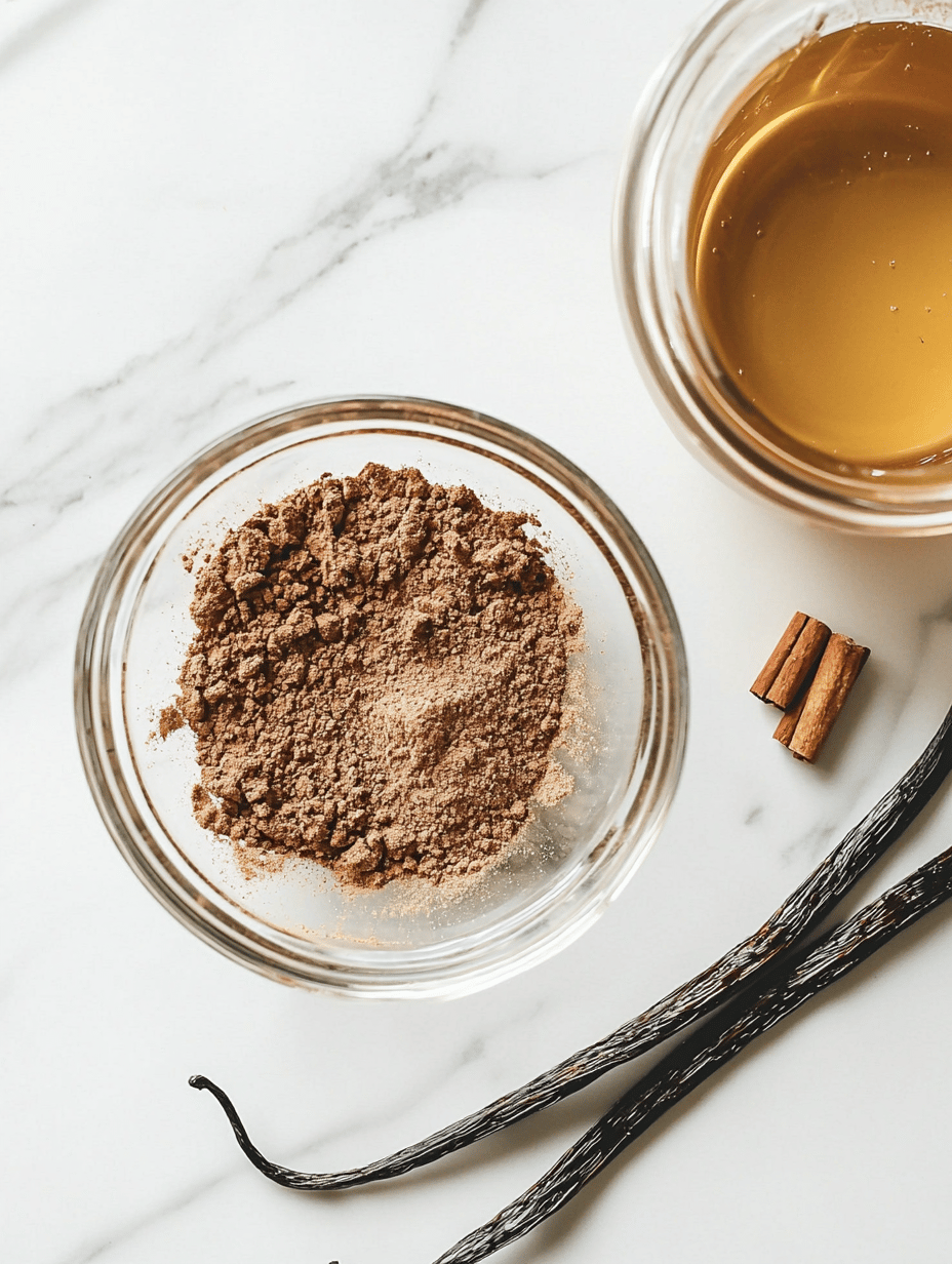 Sprinkle in the ground cinnamon, ground nutmeg, and pour in the vanilla extract. For a touch of sweetness, add honey or maple syrup if desired.