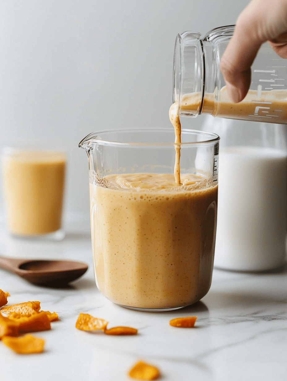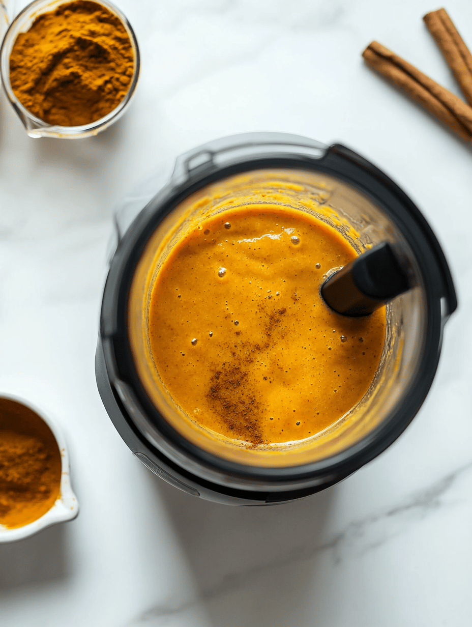 Secure the lid and blend on high for about 30-60 seconds, until the mixture is completely smooth and velvety. You should see a bright orange, frothy liquid with no visible chunks.