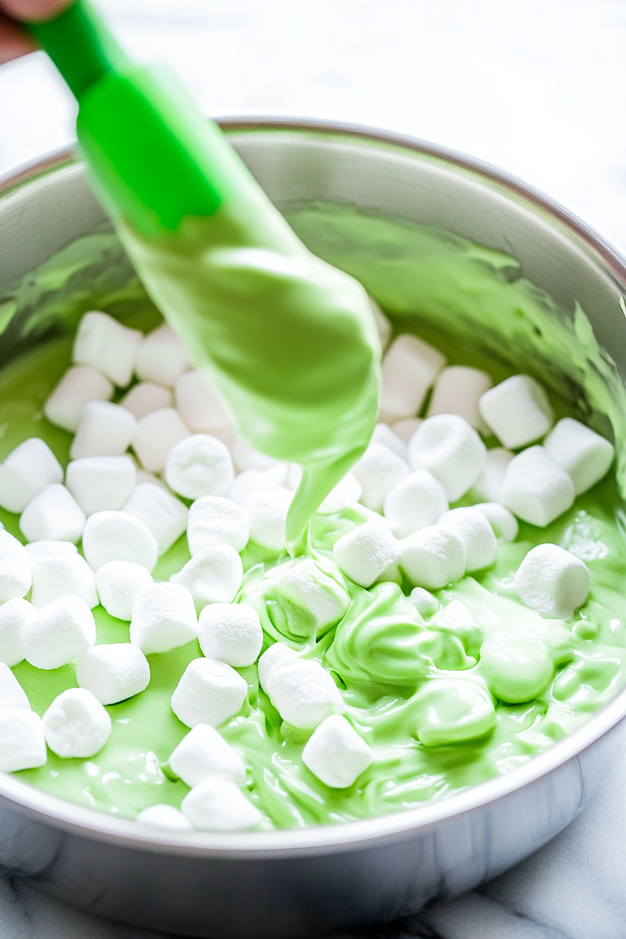 Add the marshmallows to the melted butter and stir until fully melted. Stir in food coloring.