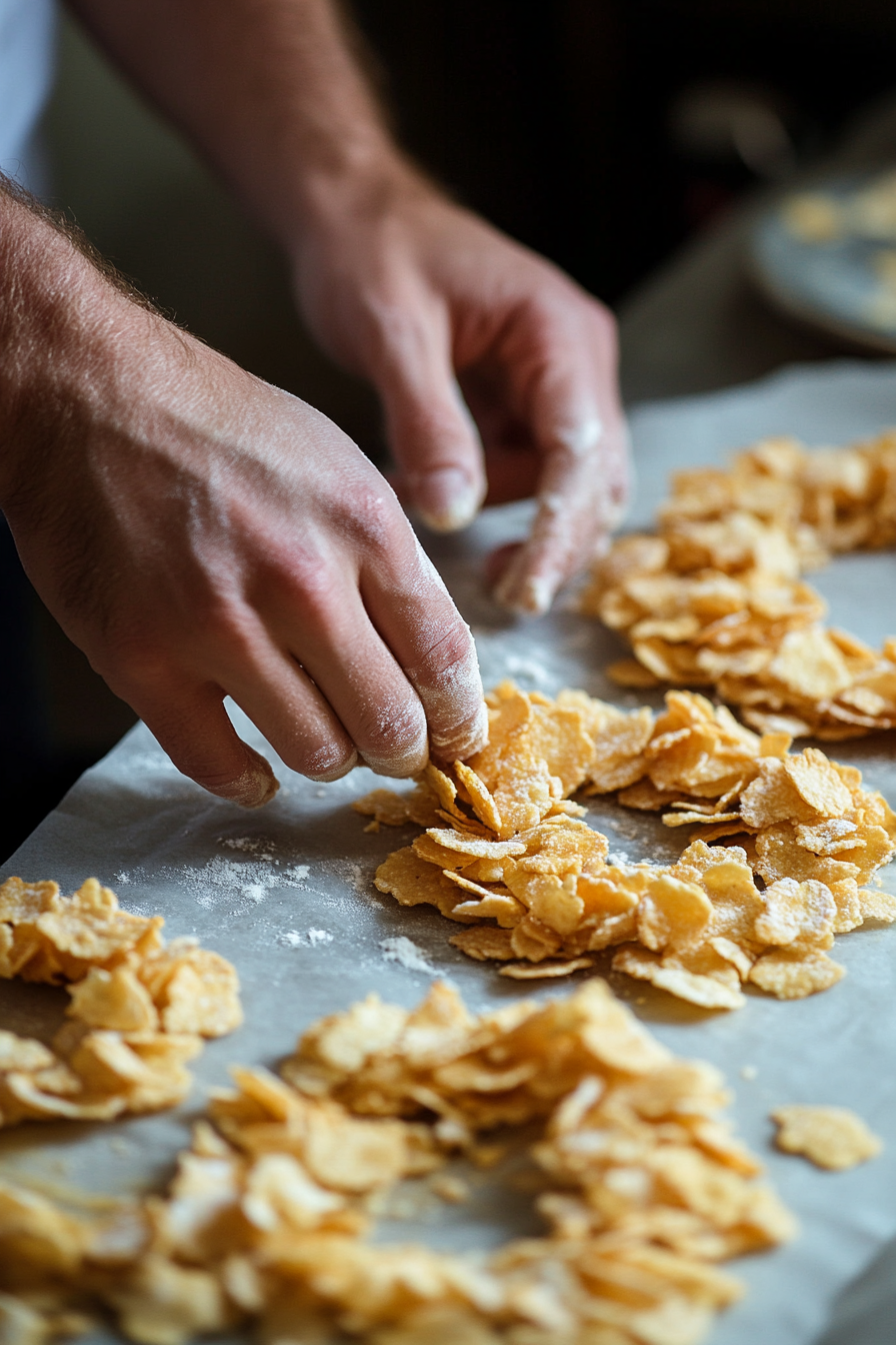 Spoon the cornflake mixture onto the parchment paper in small dollops.