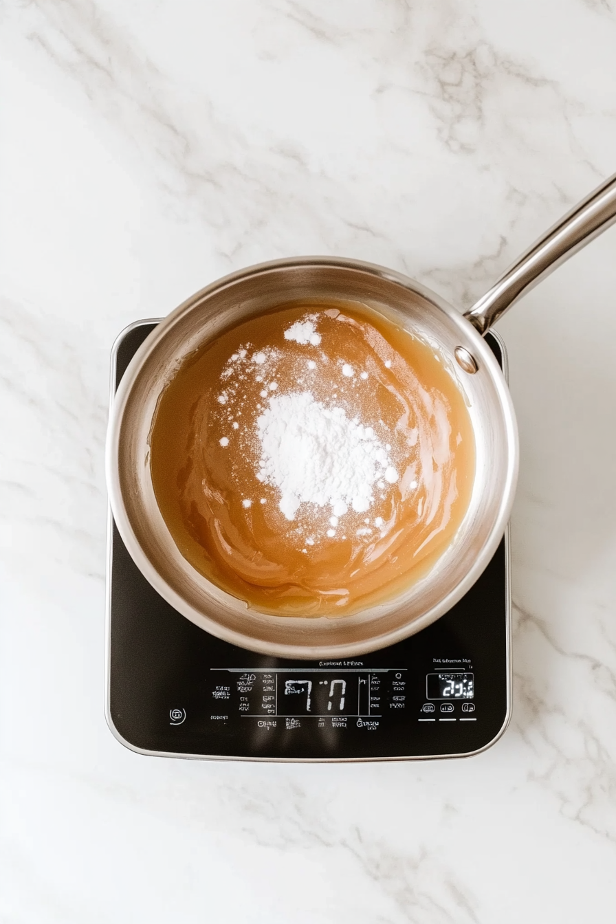Remove from heat, add baking soda, and stir briefly (careful, it may sputter).