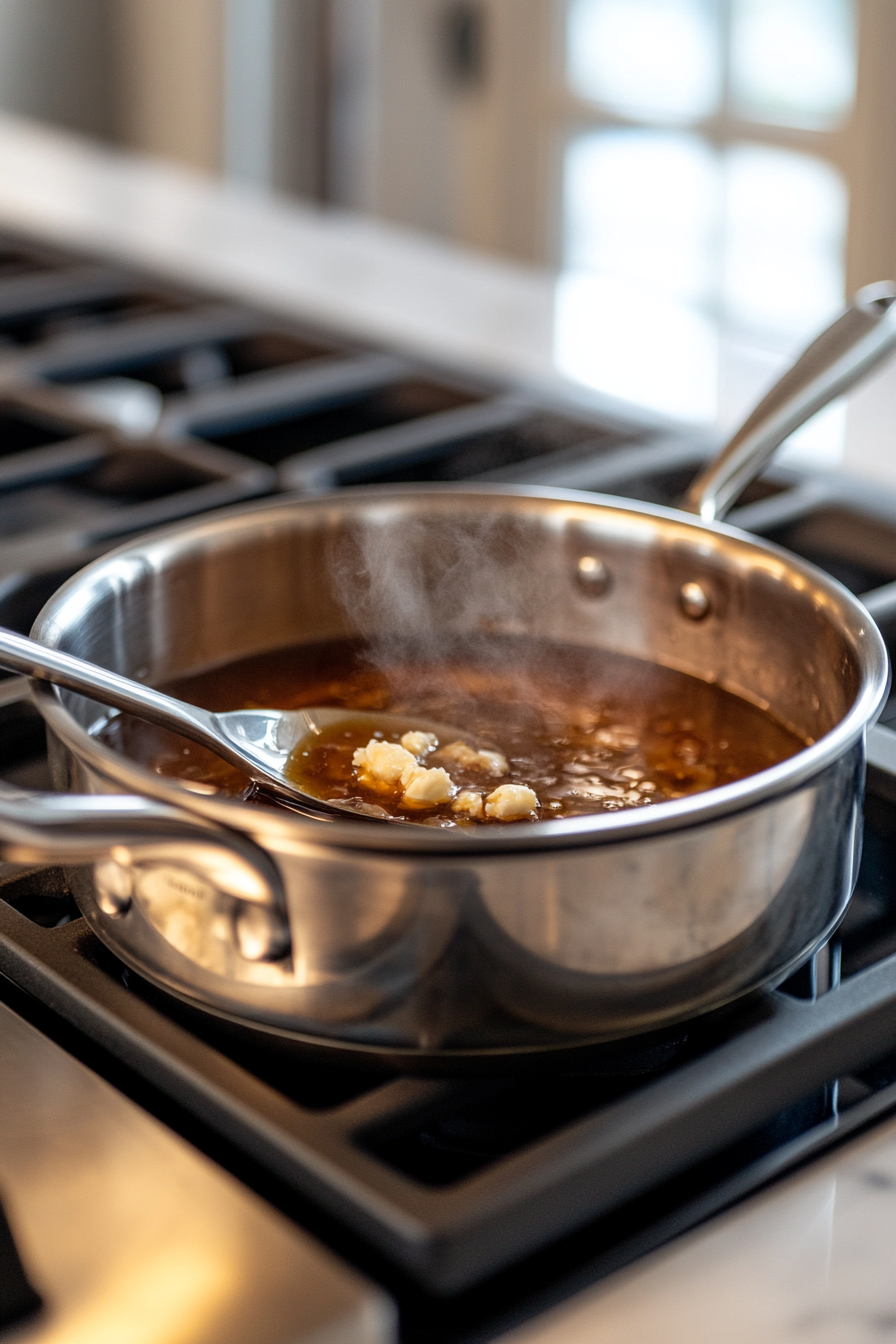 In a heavy-bottomed saucepan, combine granulated sugar, water, butter, and corn syrup.