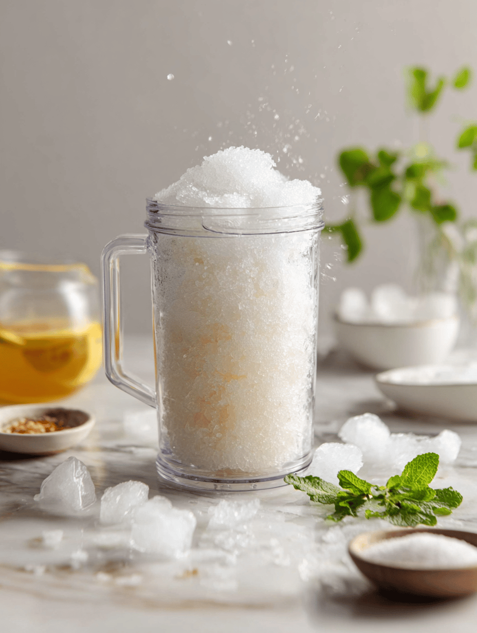 Scoop the icy, bubbly mixture into glasses, garnish with a lemon wedge or a sprig of mint for a lively presentation.