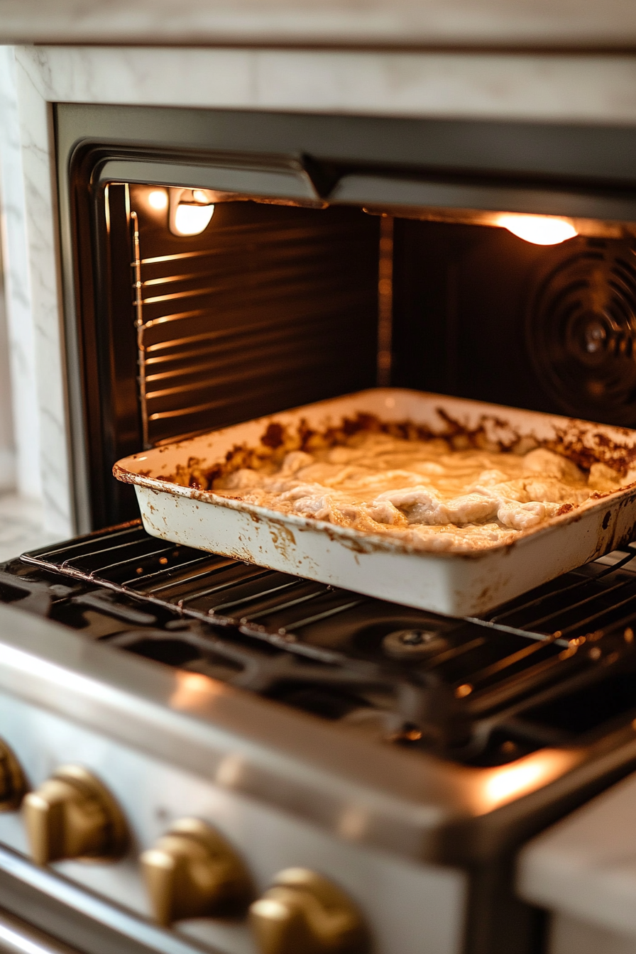 Bake for 40-50 minutes until lightly browned and a toothpick comes out clean.