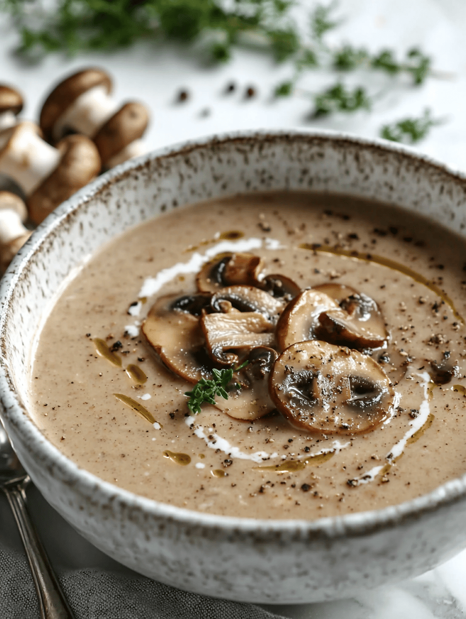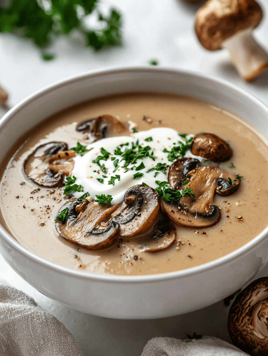 Taste and adjust the seasonings as needed, adding more salt or pepper if desired. The soup should be rich, smooth, and filled with the deep umami flavor of the mushrooms.
