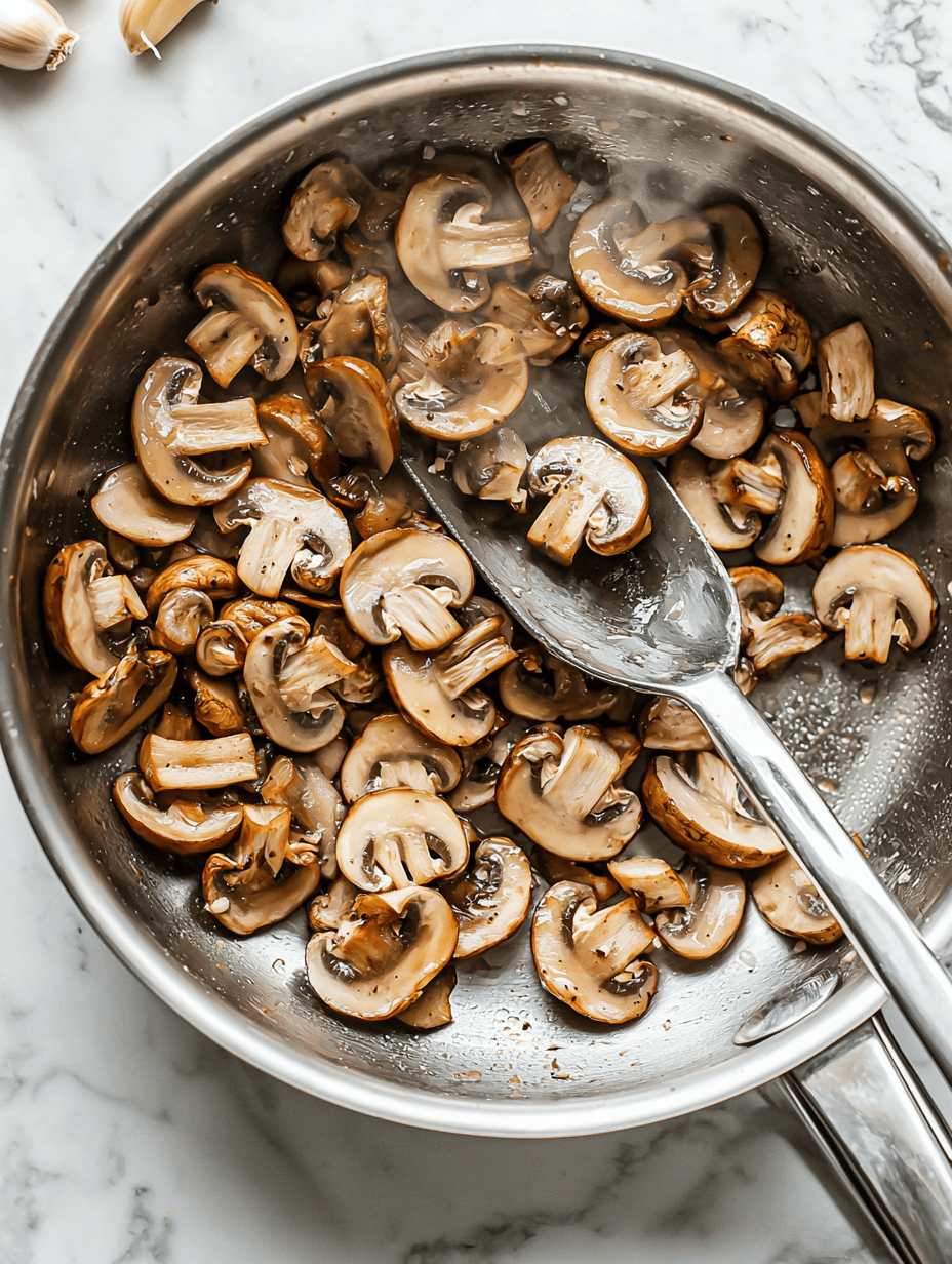 Add the sliced mushrooms to the pan and cook, stirring occasionally, until they release their moisture and turn a rich brown, about 8 minutes. The mushrooms should be fragrant and slightly caramelized.