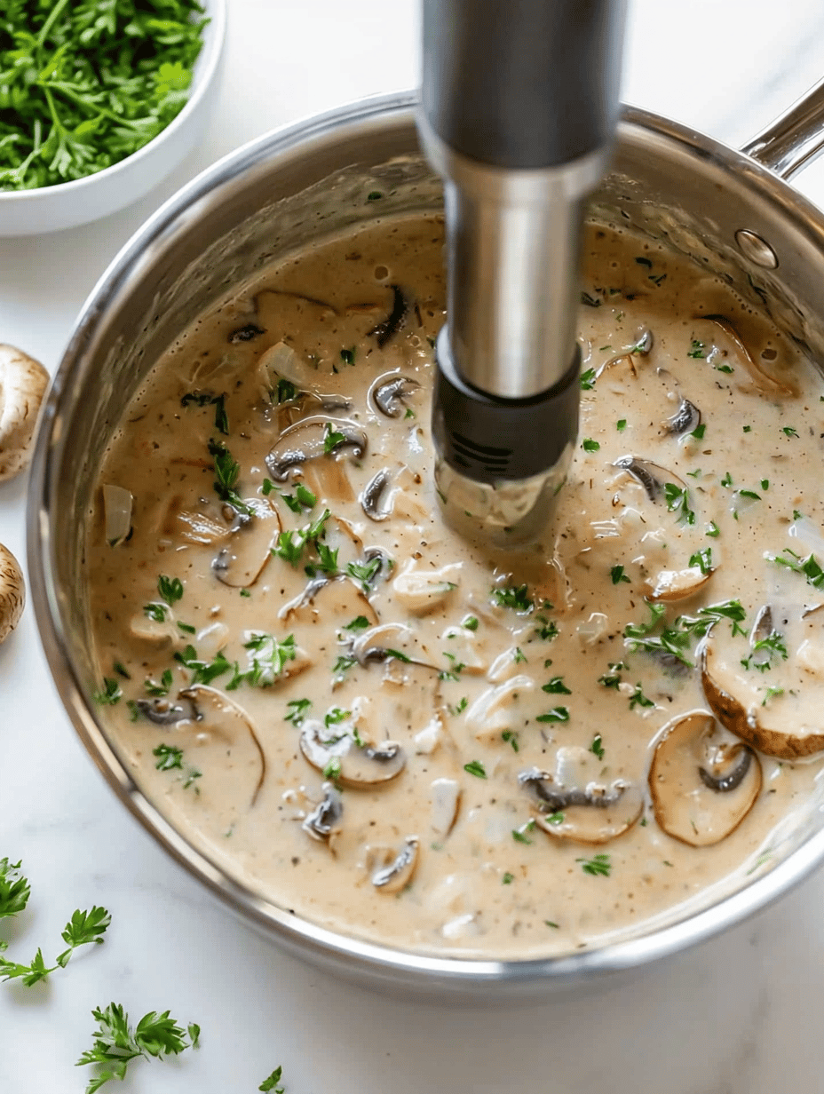 Use an immersion blender or carefully transfer the mixture to a blender and puree until smooth and velvety. This transforms the chunky mushrooms into a luxurious, creamy base.