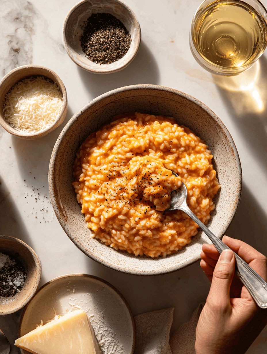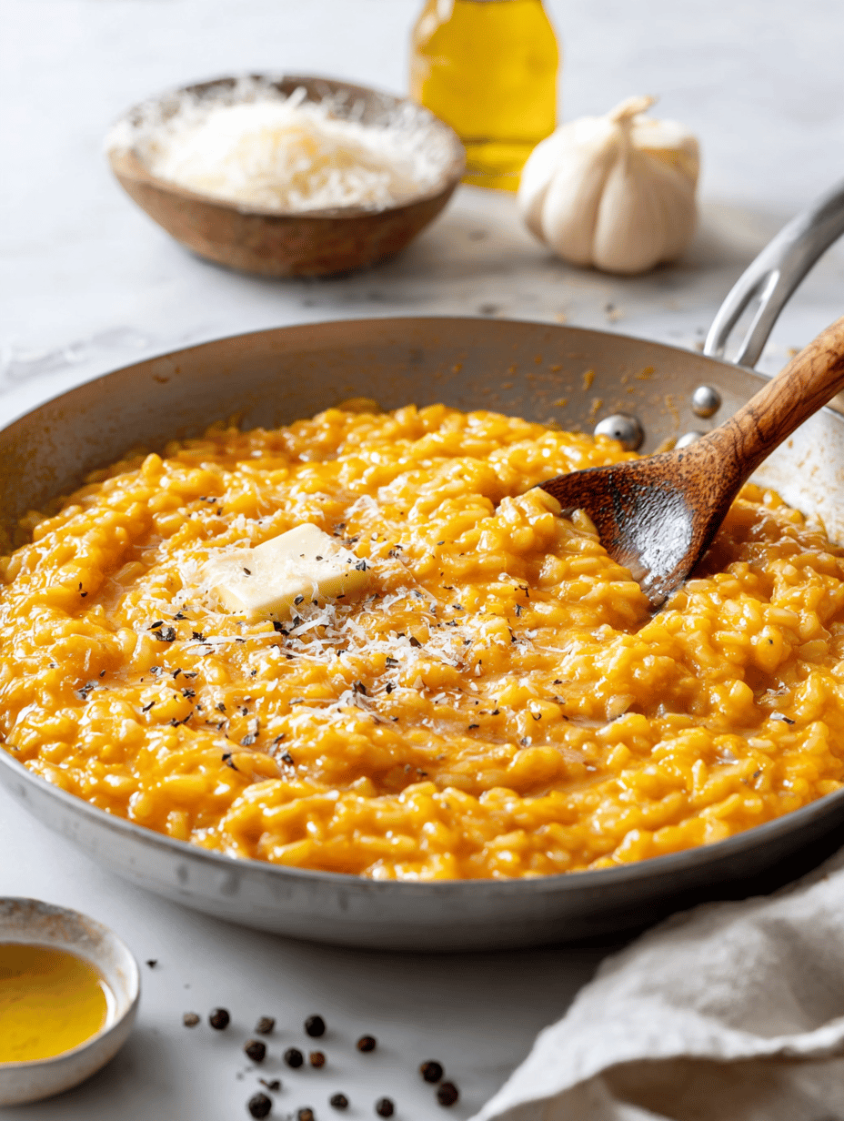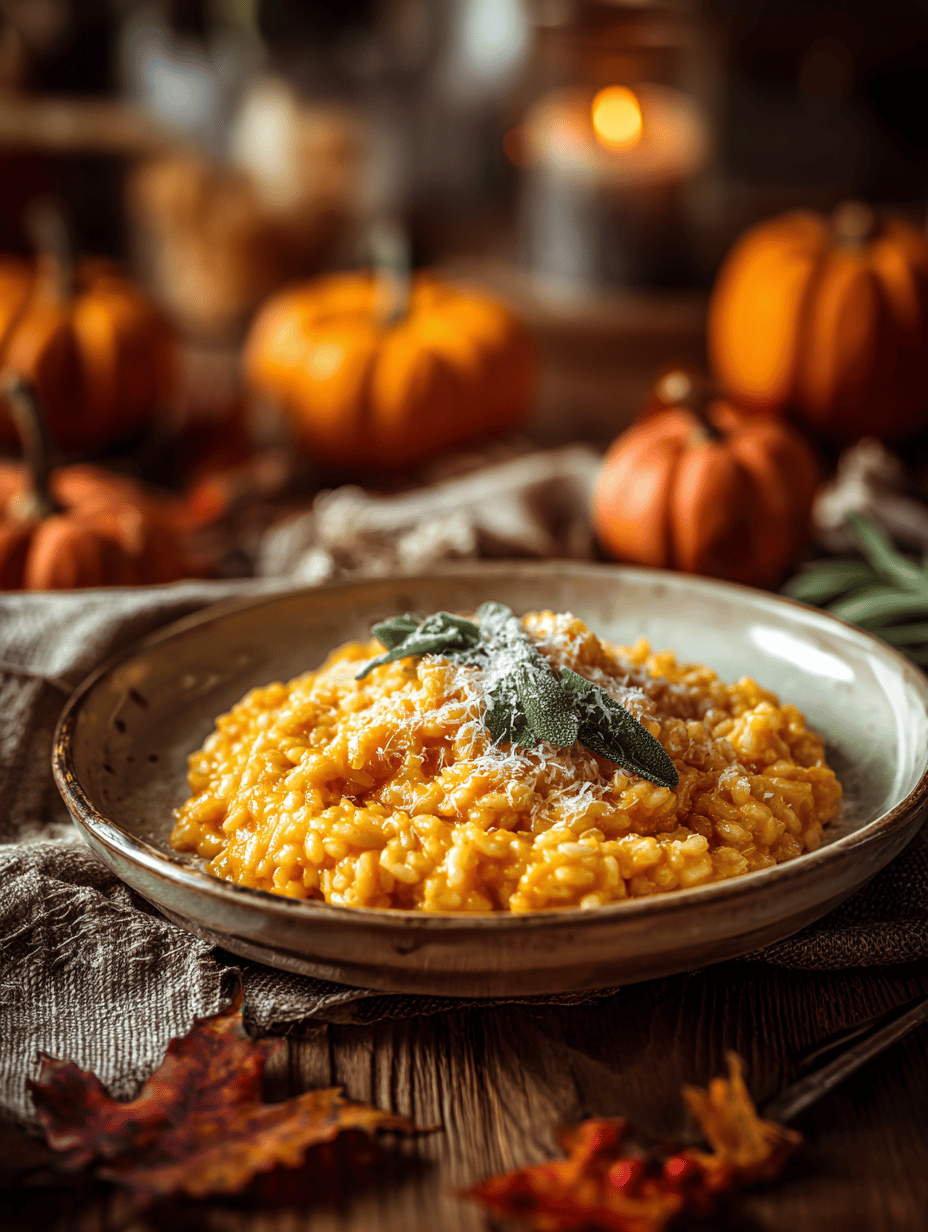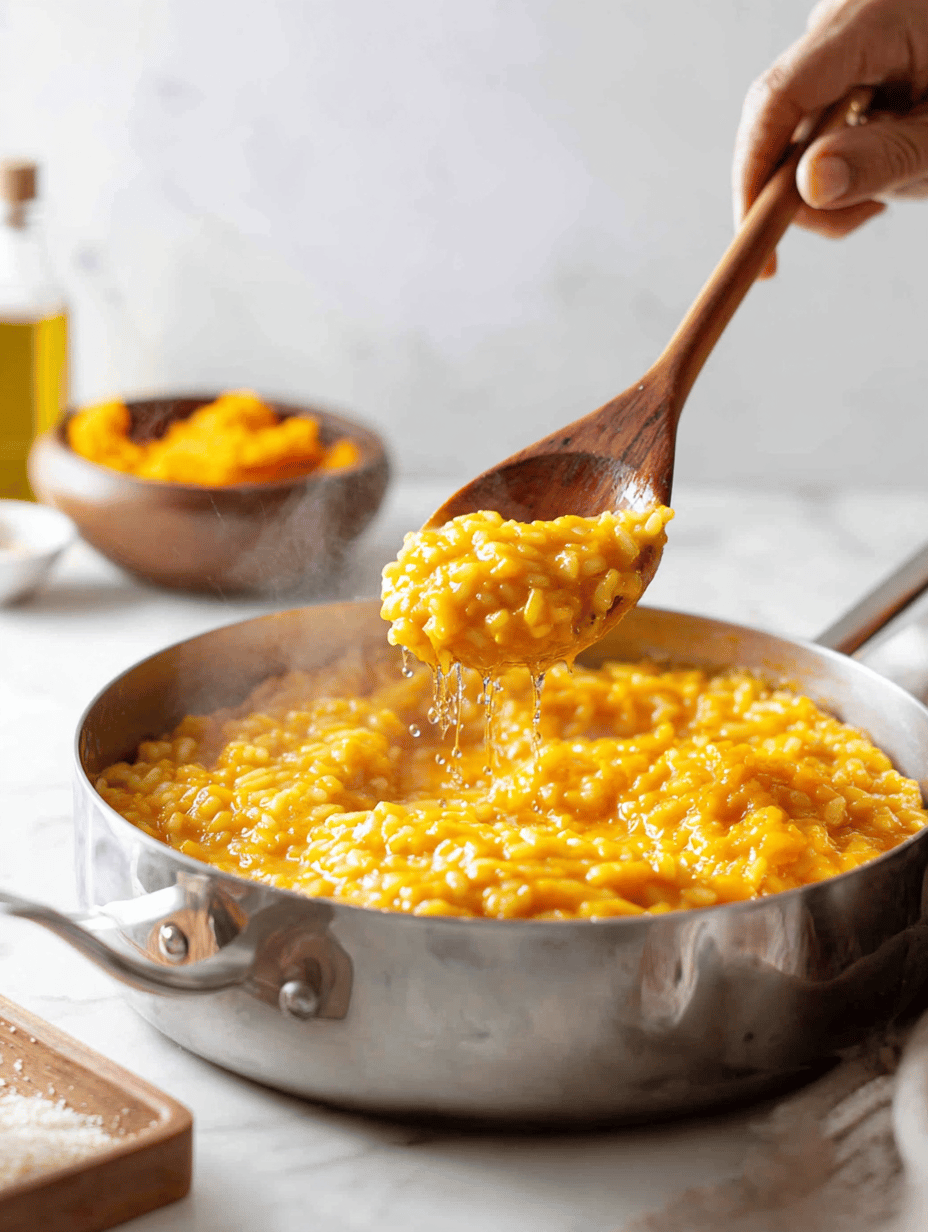 Serve the pumpkin risotto hot, garnished with extra Parmesan and a drizzle of good olive oil if desired. Enjoy its comforting, creamy texture and vibrant color.