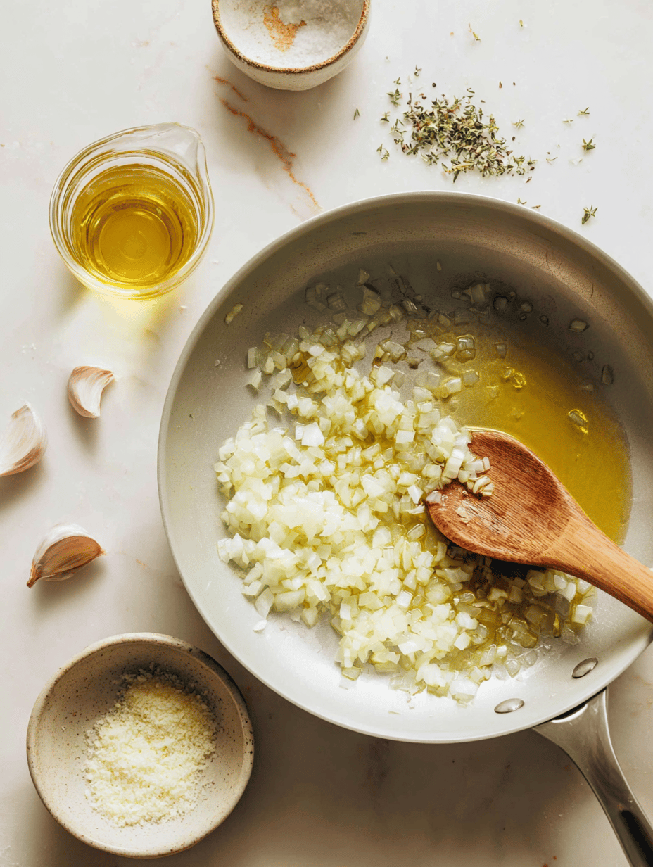 Add the finely chopped onion to the pan and cook, stirring frequently, until it becomes translucent and soft, about 5 minutes. You’ll notice a sweet aroma developing as it cooks.