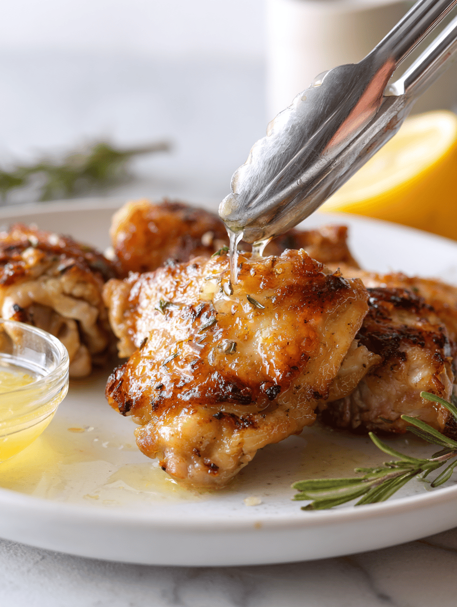 Squeeze fresh lemon juice or splash vinegar over the rested chicken to brighten the flavors and cut through the richness of the crispy skin and tender meat.