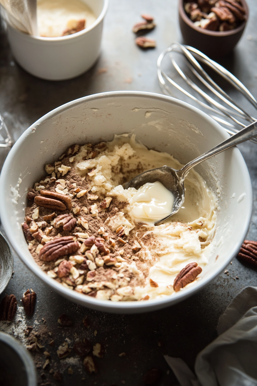 In a bowl, mix together the cake mix, cinnamon, pecans, and melted butter until crumbly.