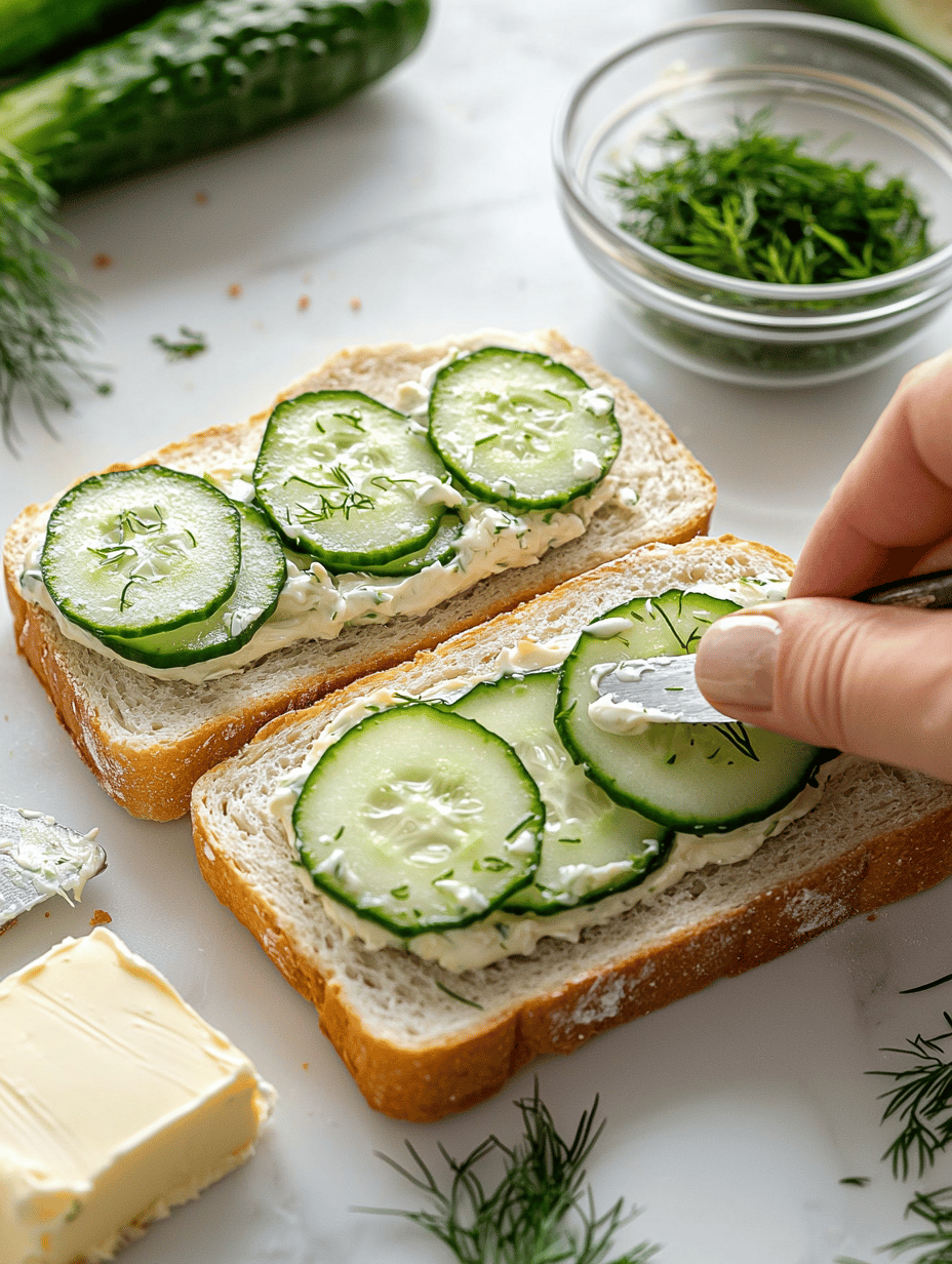 Ensure the bread is not over-toasted to keep it tender enough for easy bites. Thin cucumber slices make for a prettier, crunchier sandwich. Lightly pressing the layers together helps them hold their shape when cut.