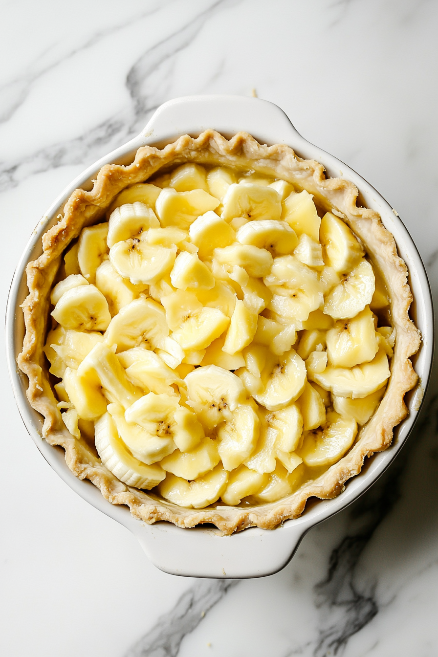 Arrange sliced bananas in a single layer over the cream cheese mixture.