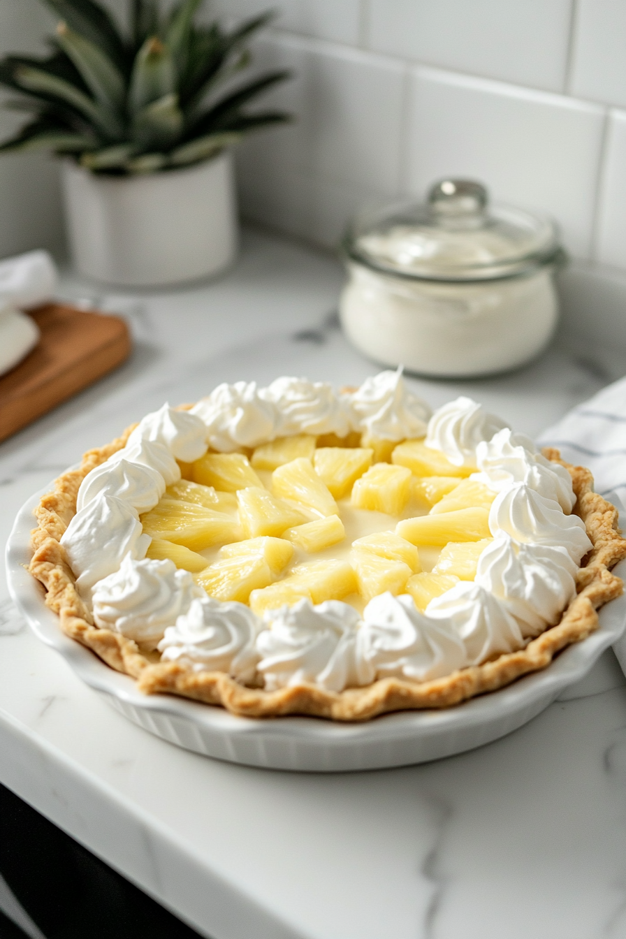 Spread the remaining Cool Whip over the pineapple layer, covering the entire pie.