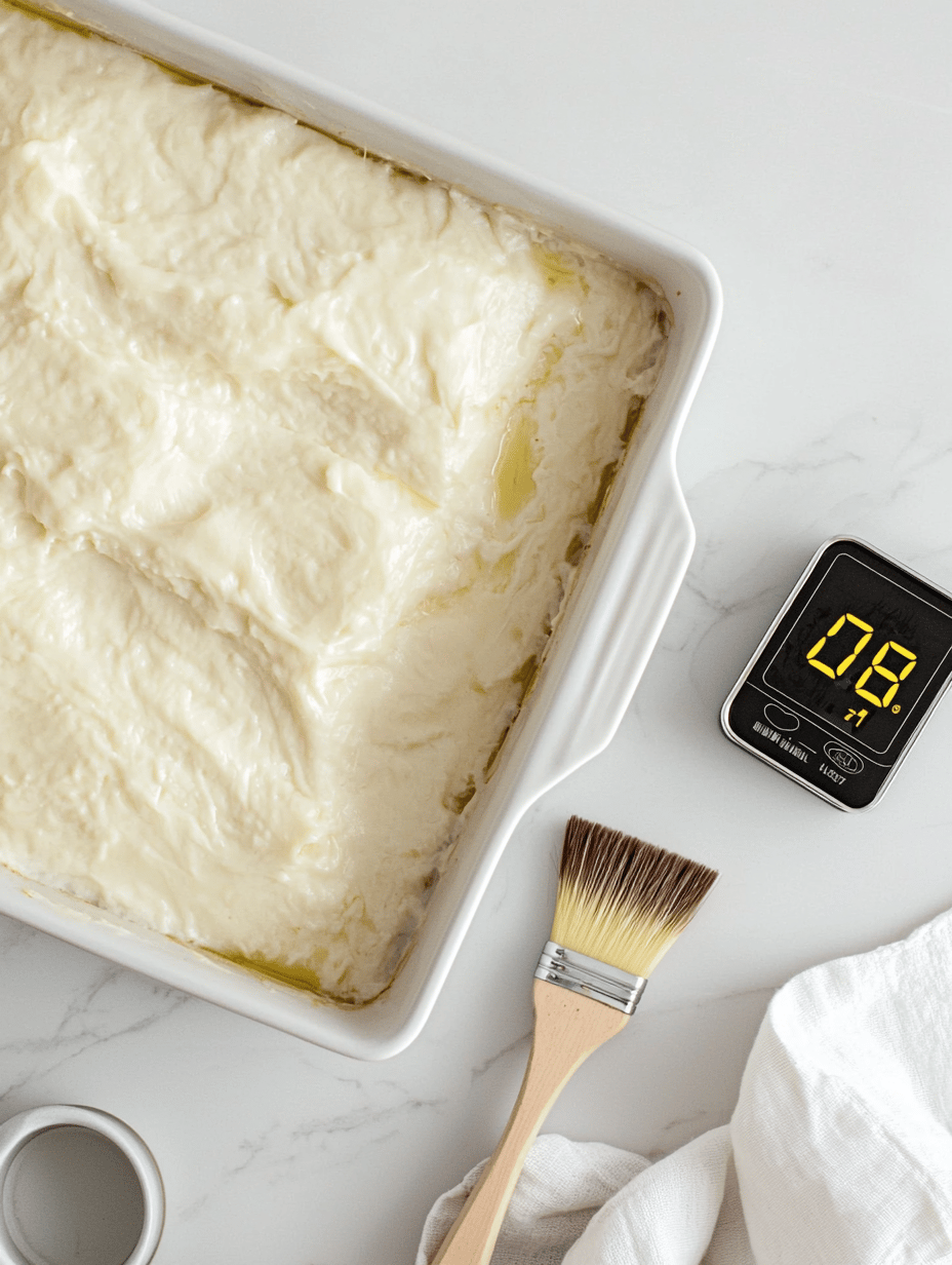 Preheat your oven to 375°F (190°C). Grease a baking dish with a little olive oil or non-stick spray to prevent sticking.