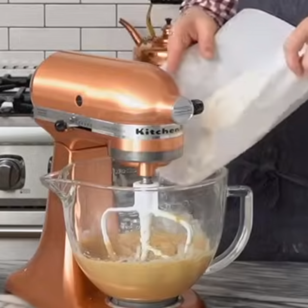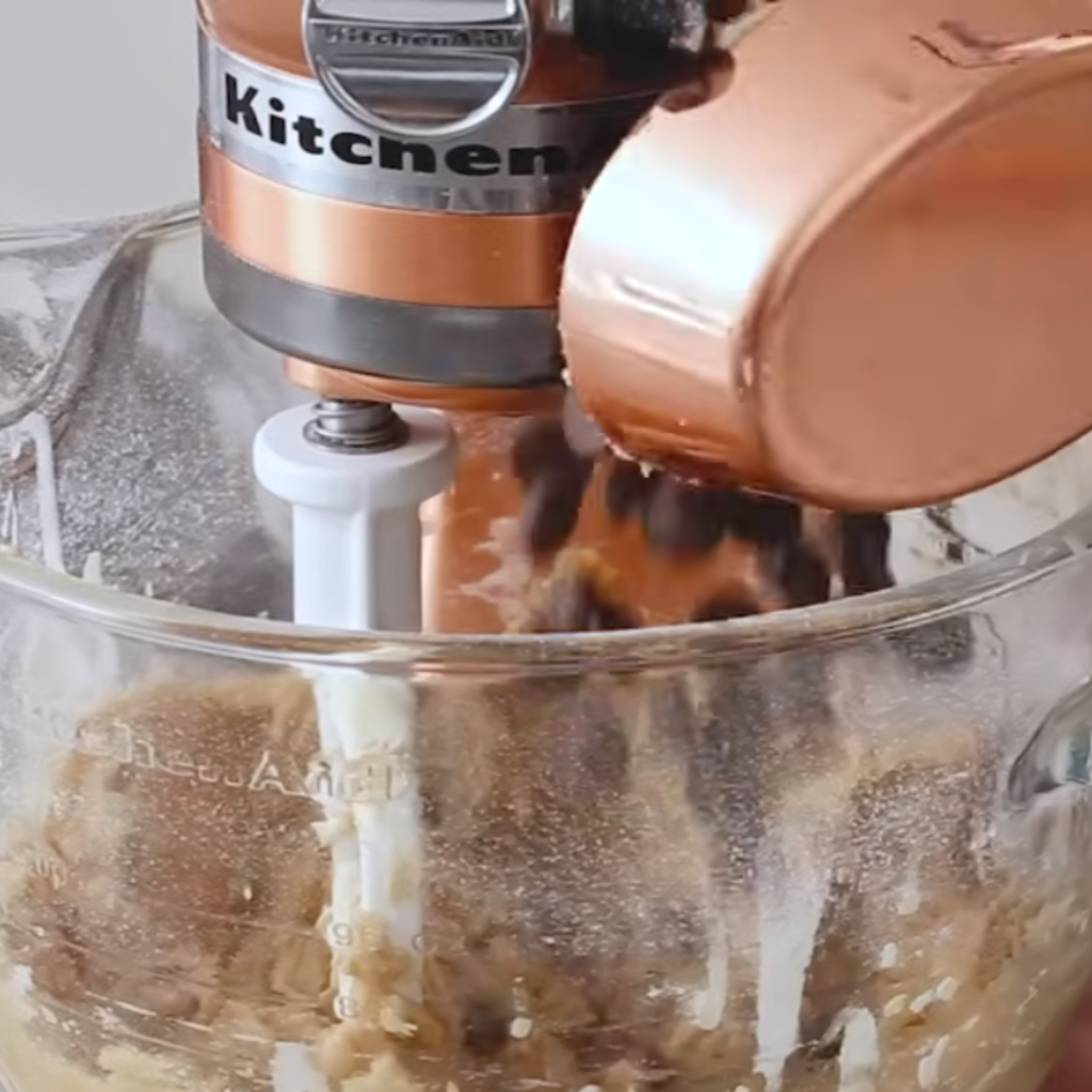 Beat together butter, sugars, vanilla, and salt until creamy.