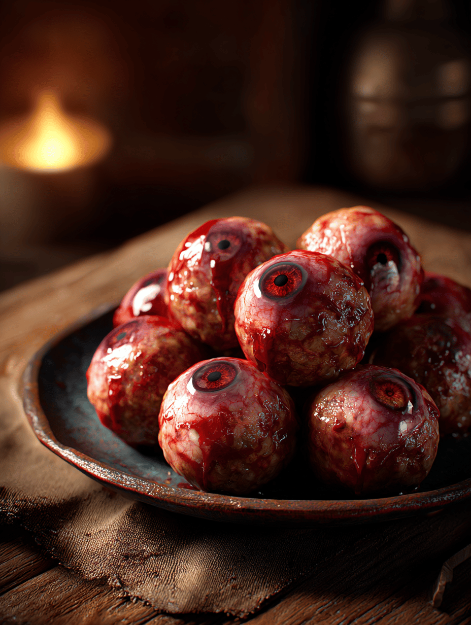 Serve the eyeball meatballs hot, paired with your favorite spicy tomato sauce or tangy yogurt dip for a bold and adventurous flavor experience.