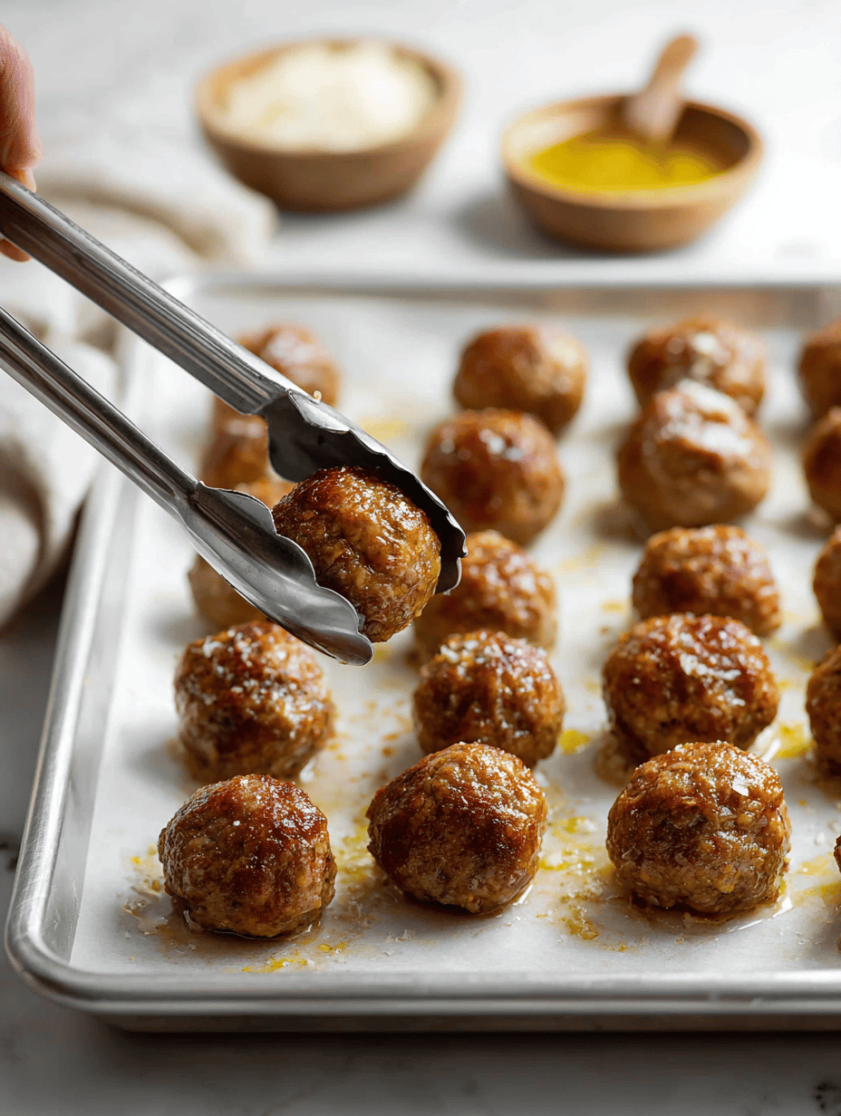 Brown the meatballs for about 4-5 minutes, turning occasionally, until they develop a crispy, golden exterior and release a satisfying sizzle.