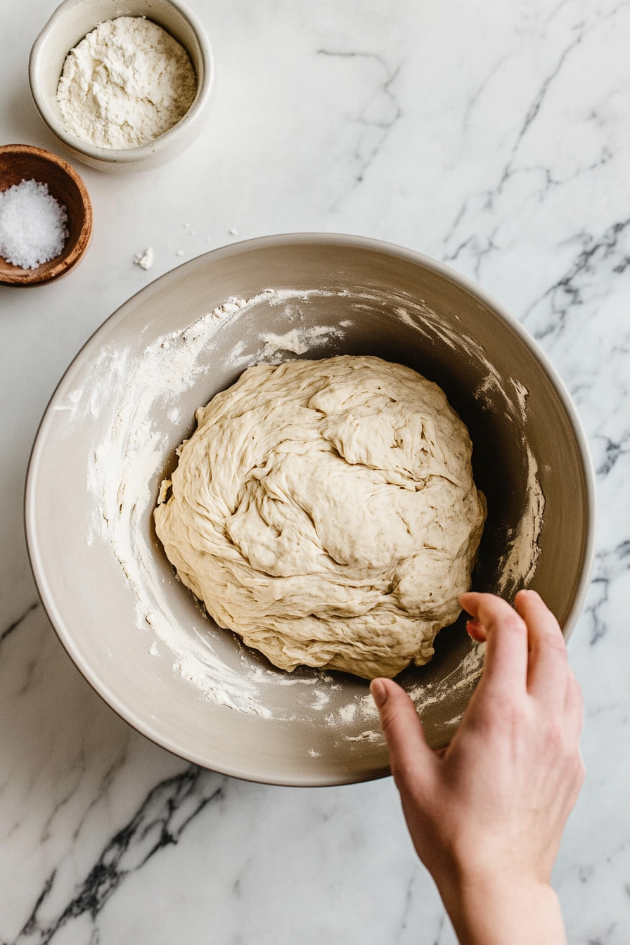 Gradually add remaining salt and flour, kneading until smooth.
