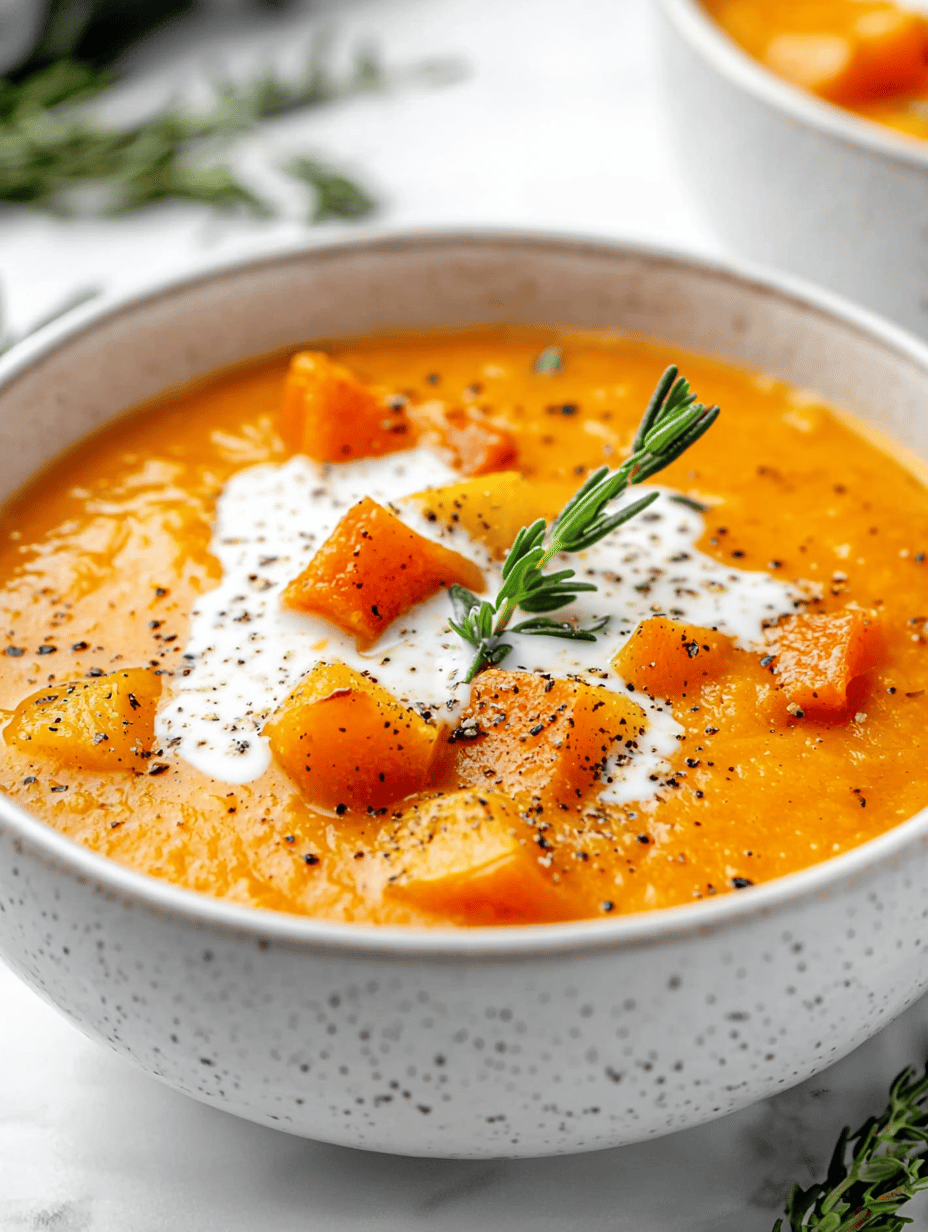 Serve the soup in bowls, garnished with freshly chopped thyme or parsley for a burst of fresh flavor. Pair with crusty bread for a cozy, complete meal.