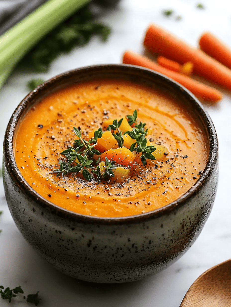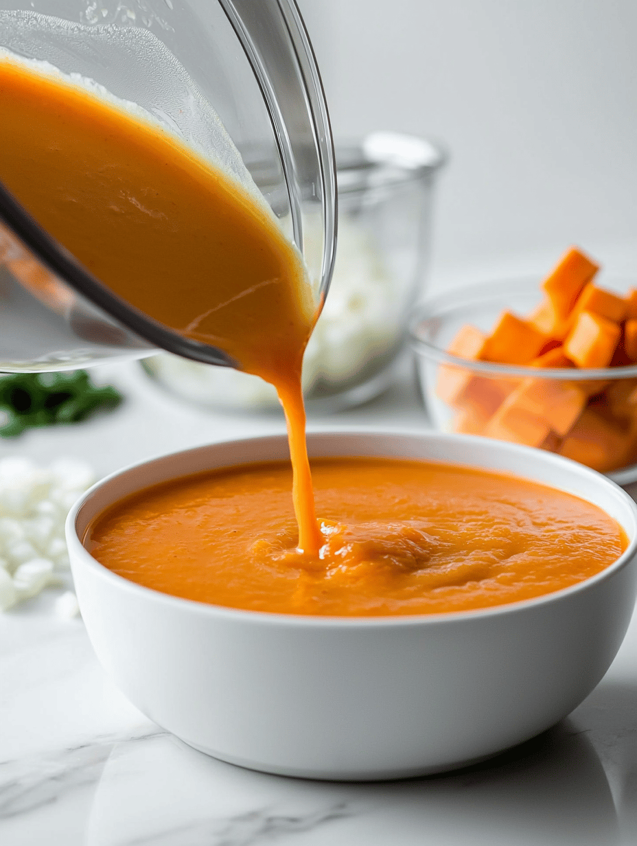 Once cooked, carefully transfer the mixture to a blender or use an immersion blender directly in the slow cooker. Puree until smooth and creamy, with a vibrant orange hue. If the soup is too thick, stir in additional warm broth or water to loosen it.