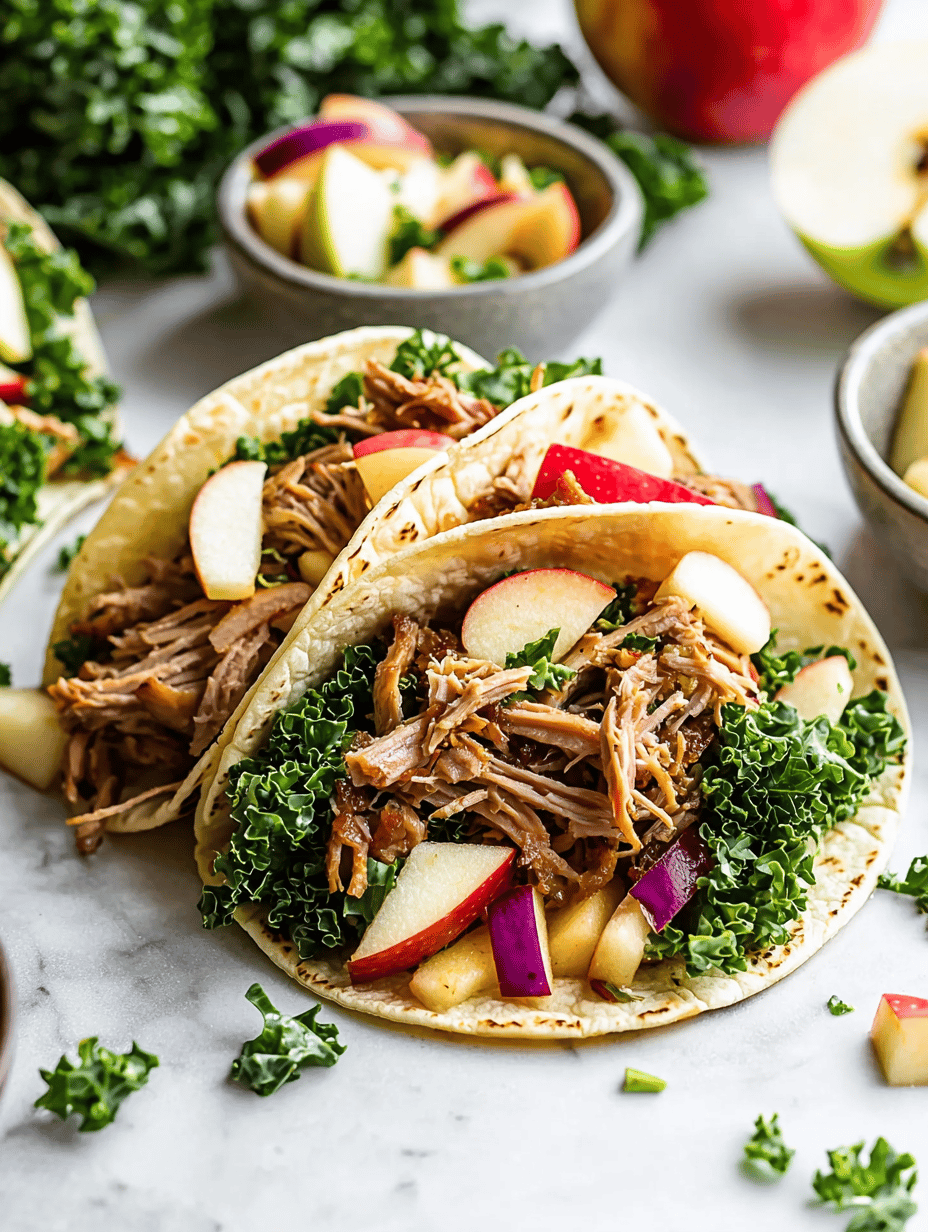 Serve the tacos garnished with extra sliced apples or fresh greens if desired. Enjoy the combination of tender pork and crisp, tangy slaw in every bite!