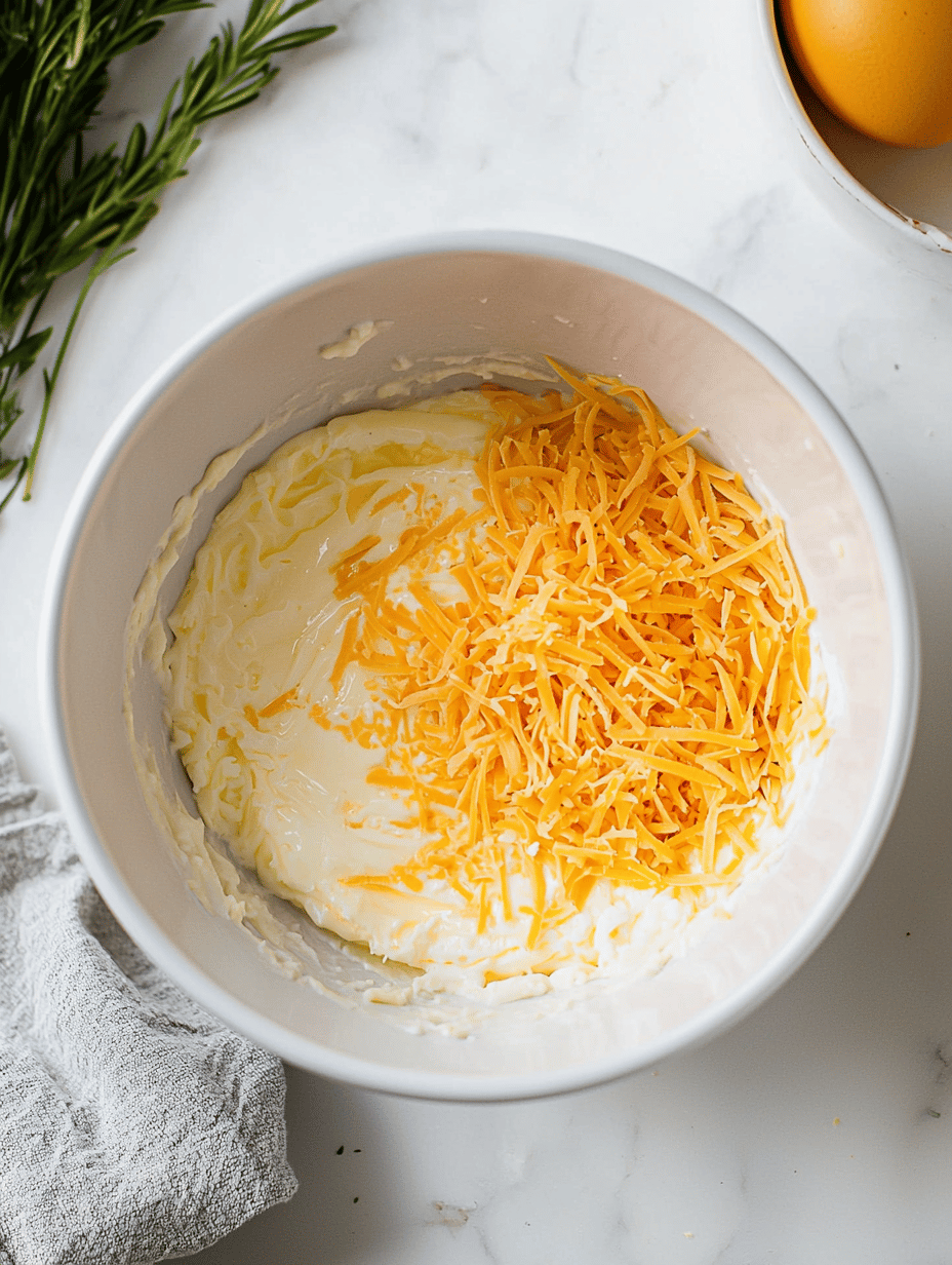 Meanwhile, in a mixing bowl, whisk the eggs until smooth. Stir in the shredded cheddar cheese.