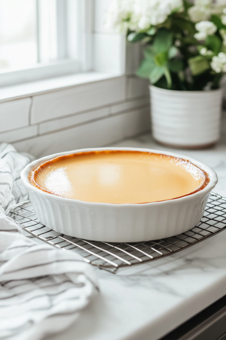 Cool the flan, then chill it for a few hours so the texture becomes silky.