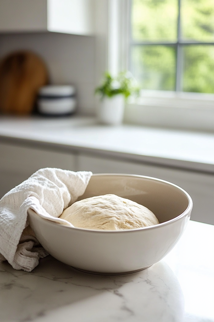 Place the dough in a greased bowl, cover with a damp cloth, and let it rise in a warm place for about 1 hour or until doubled in size.