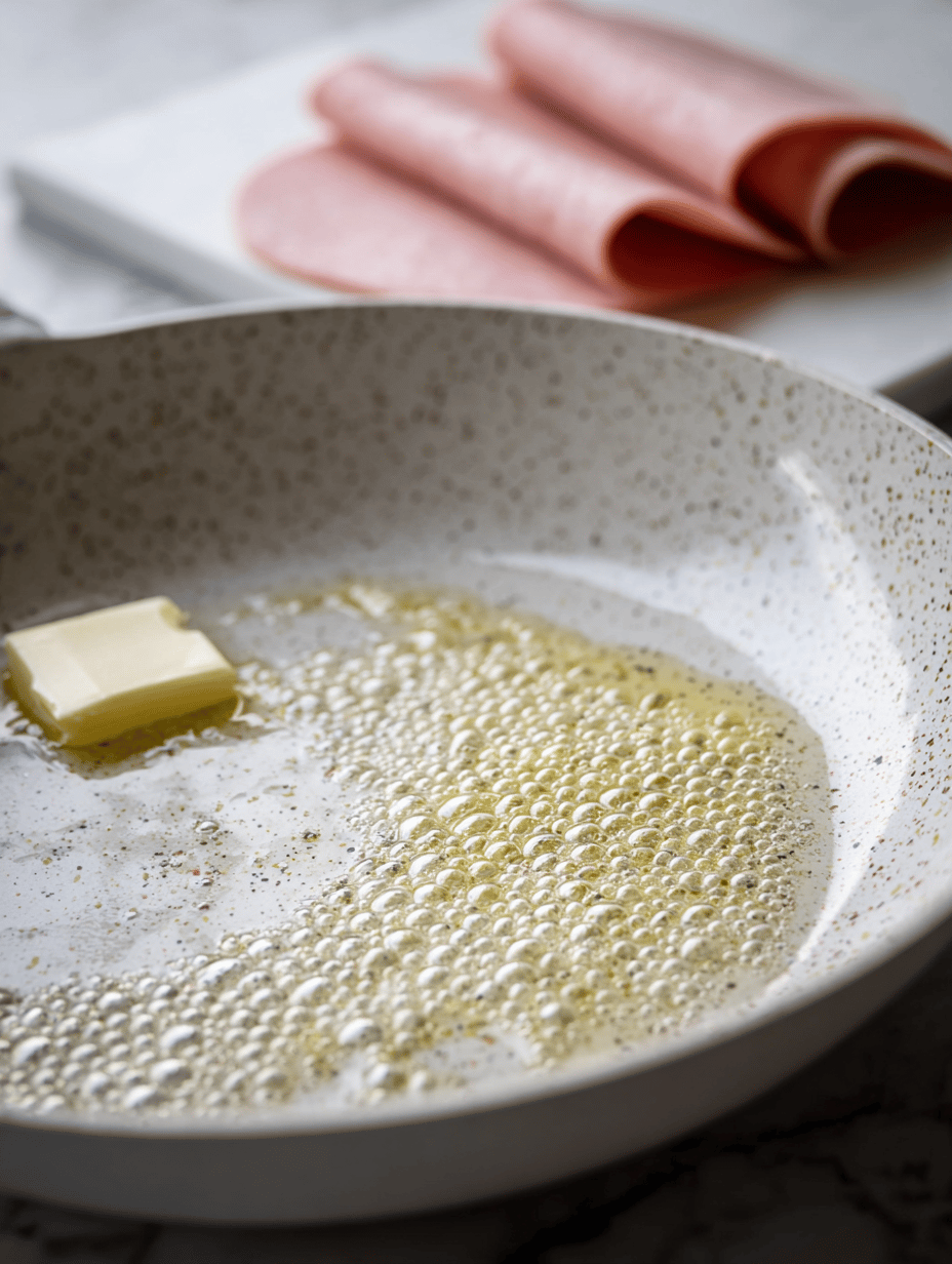 Heat your non-stick skillet over medium heat and add a generous pat of butter, listening for a gentle sizzle as it melts and shimmers.