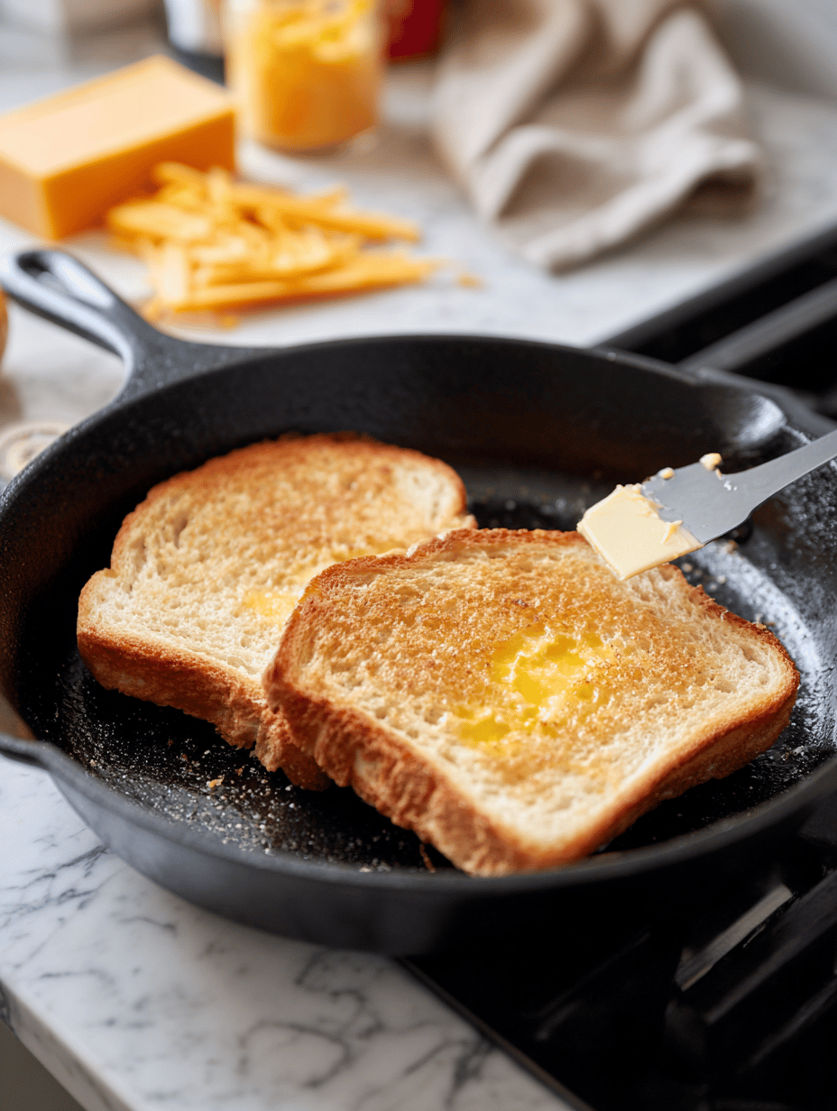 Meanwhile, toast your bread slices until golden brown and buttered, either in a toaster or in the same skillet for extra flavor.