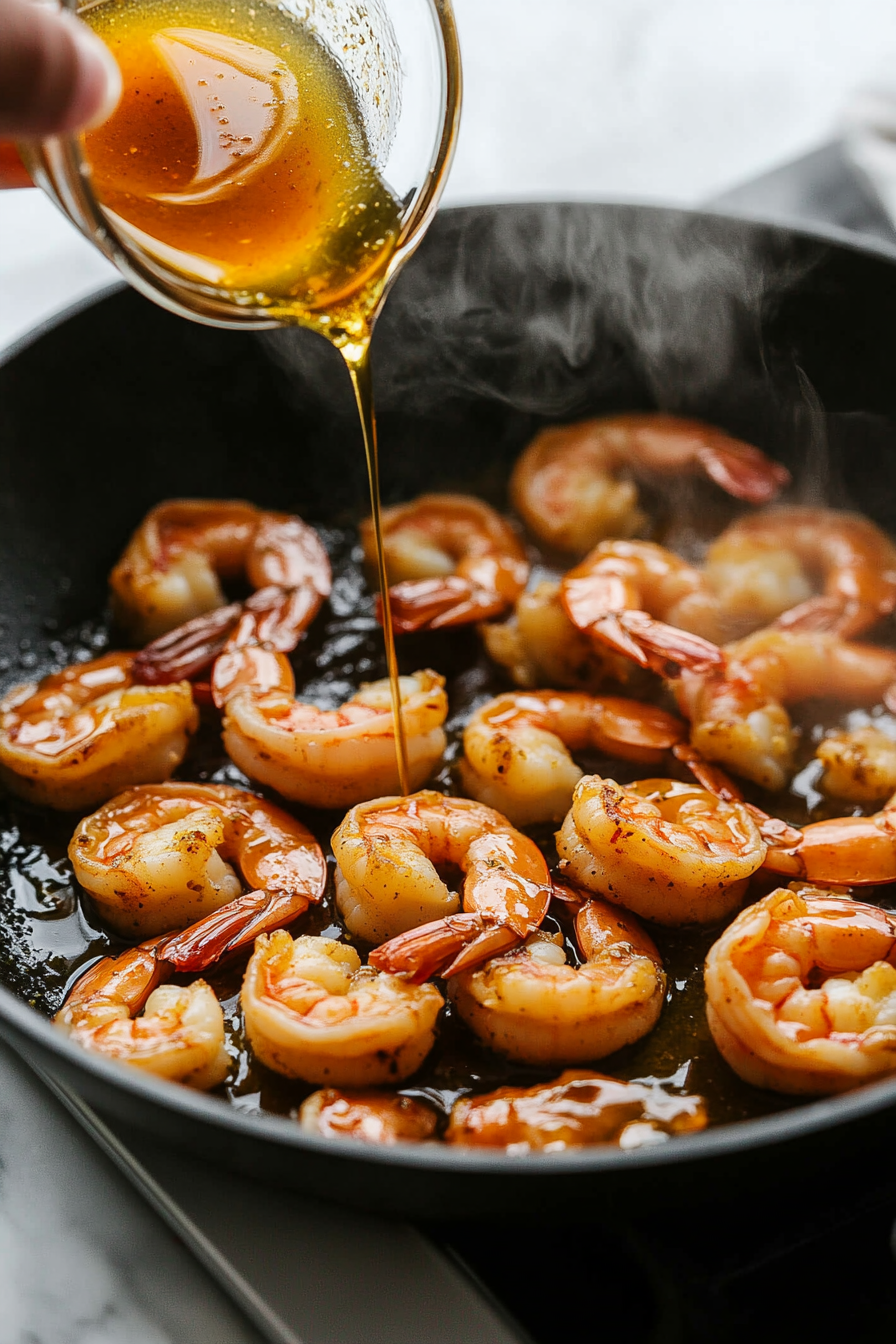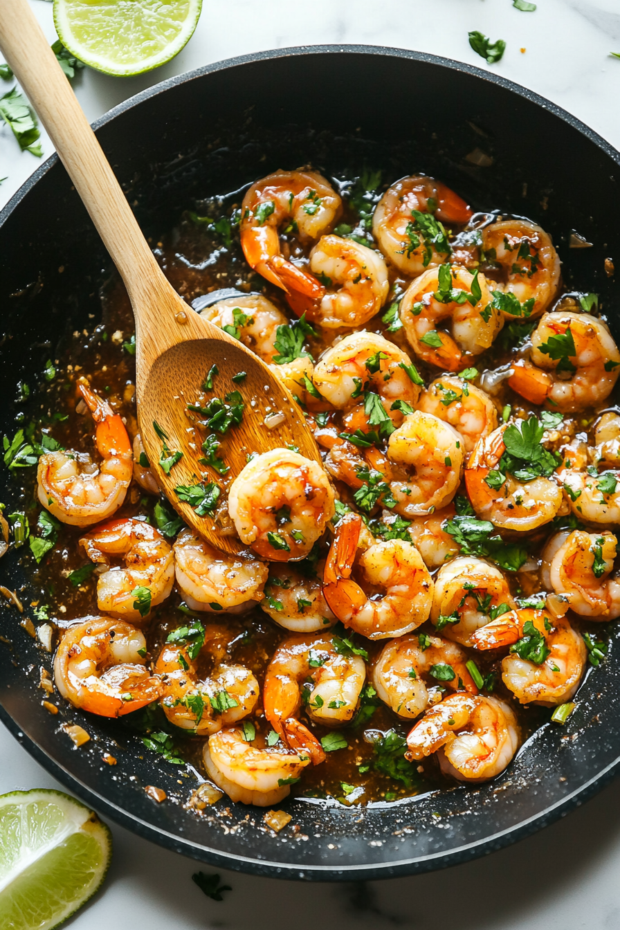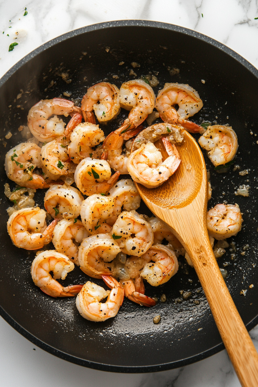 Add garlic and sauté until lightly browned, then stir in the shrimp.